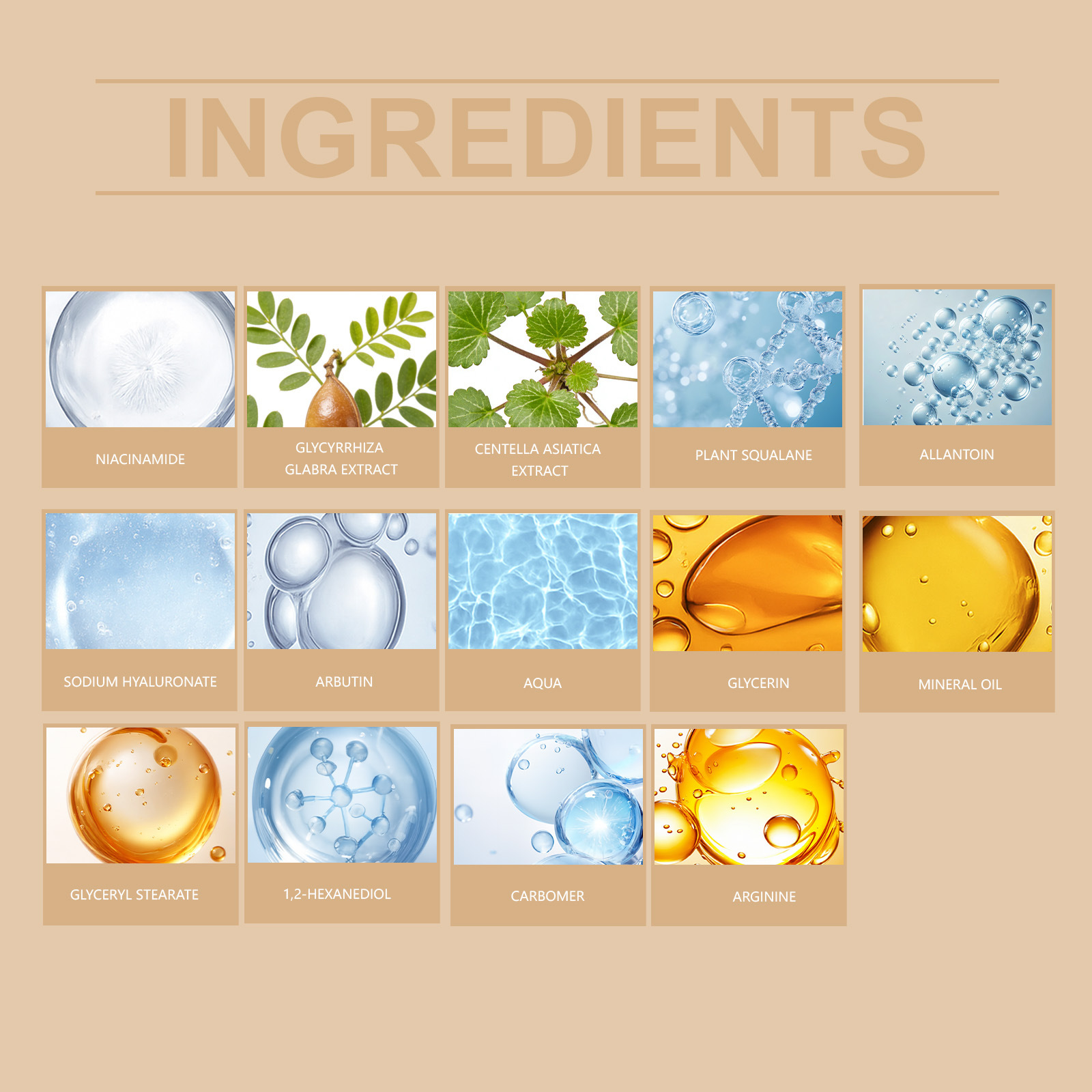 Ingredients: Active ingredients: Niacinamide, Licorice Root Extract, Snow Lotus Extract, Phytoceramides, Allantoin, Sodium Hyaluronate, Arbutin