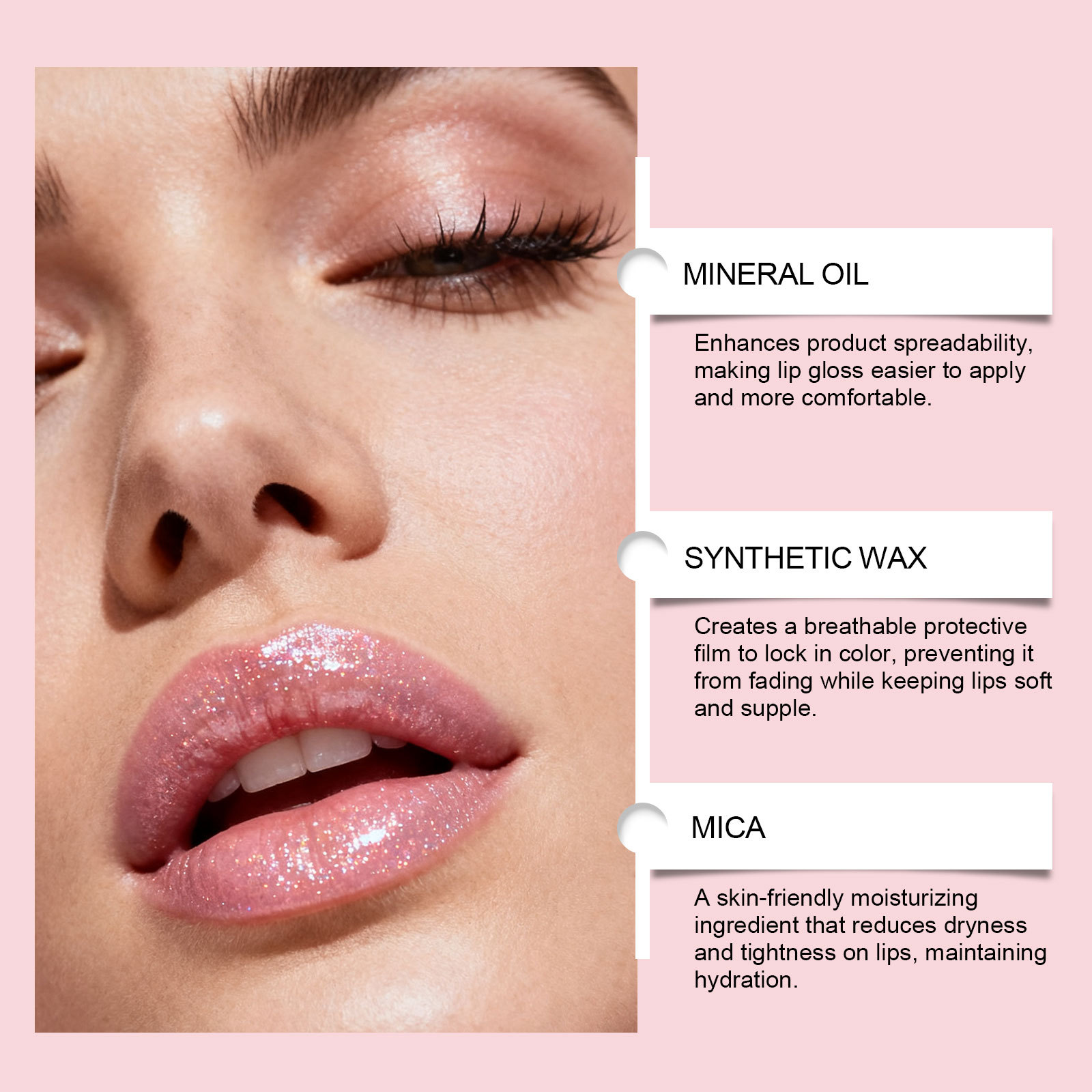 Ingredients: mineral oil, beeswax, petrolatum, synthetic fluorophlogopite, tocopherol (vitamin E), red 21 lake, and shea butter.