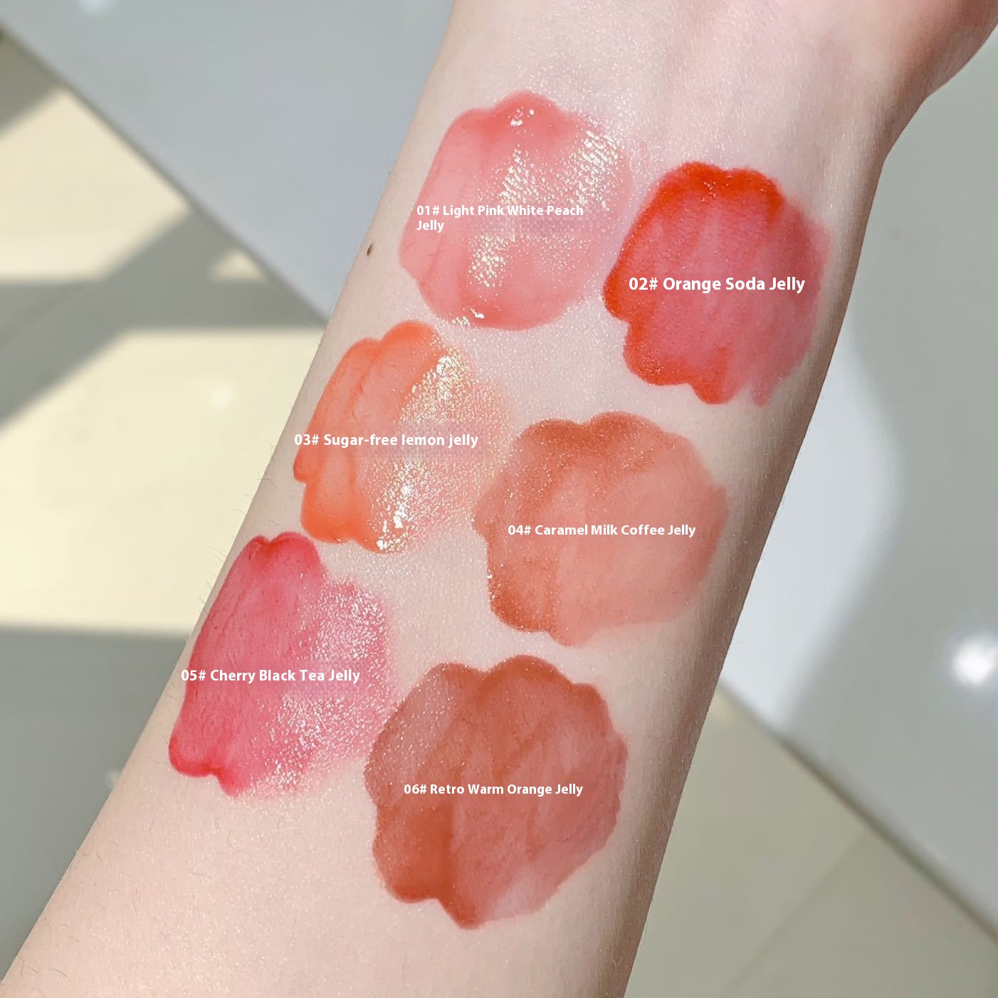 Color: 01# light pink white peach frozen, 02# orange juice frozen, 03# sugar-free lemon frozen, 04# caramel milk coffee frozen, 05# Cherry black tea jelly, 06# retro warm orange frozen