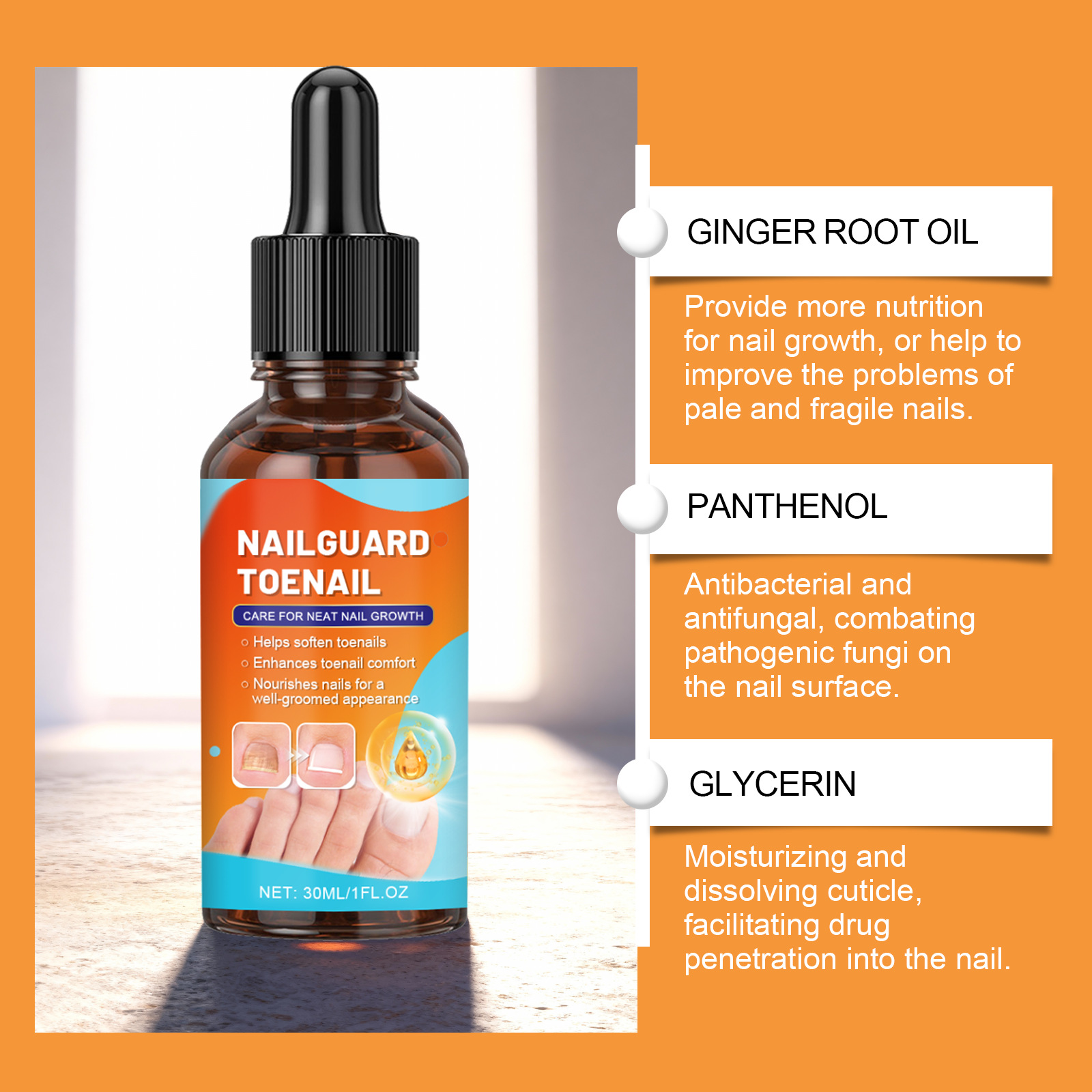 Product information:Active ingredients: urea, panthenol, ginger root oil.Inactive ingredients: water, glycerol, 1,2- hexanediol.