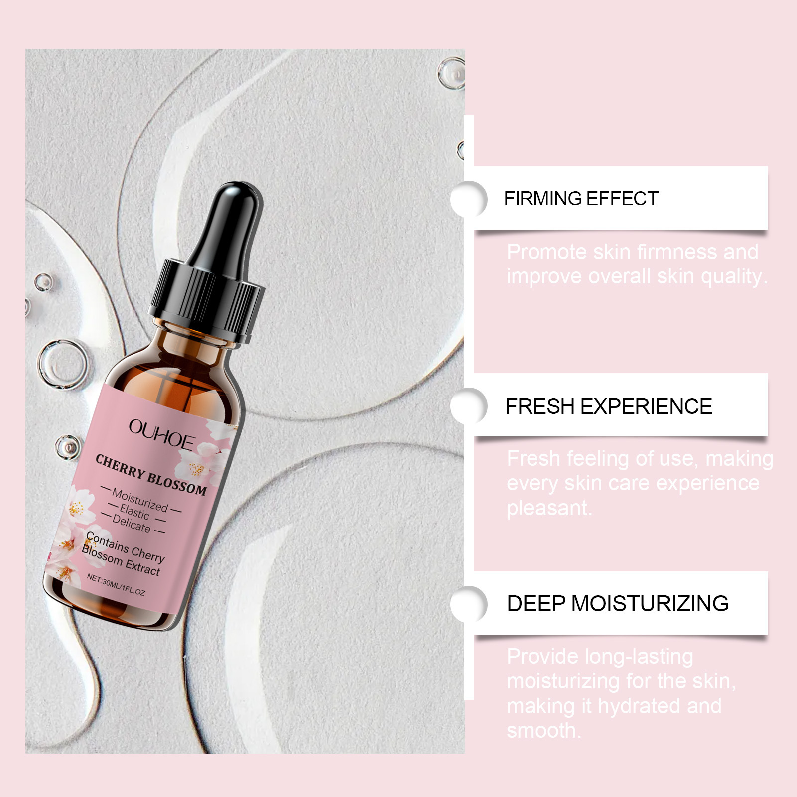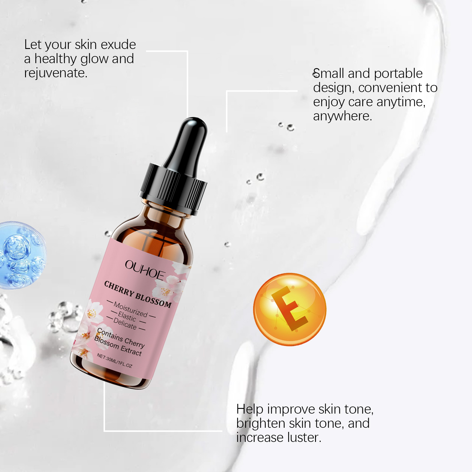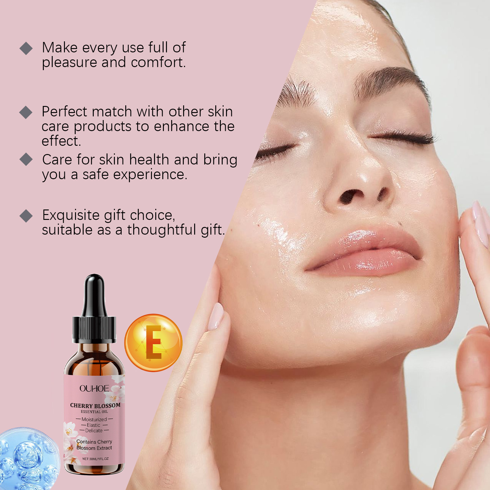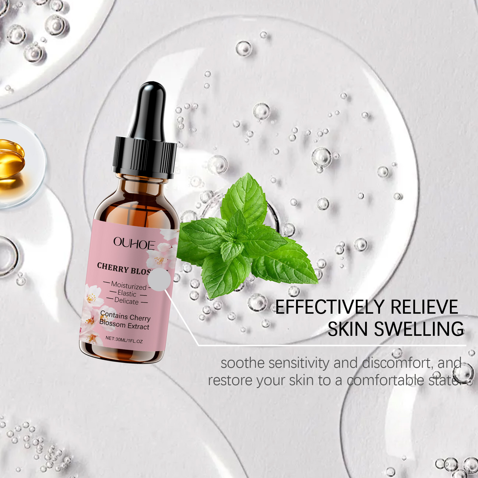 Product ingredients: Glycerin, cherry extract, hyaluronic acid, mint extract, vitamin E (tocopherol)