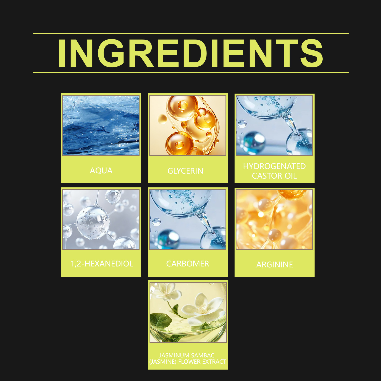 Product information:Ingredients: water glycerin hydrogenated castor oil 1,2- hexanediol carbomer arginine Jasmine extract.