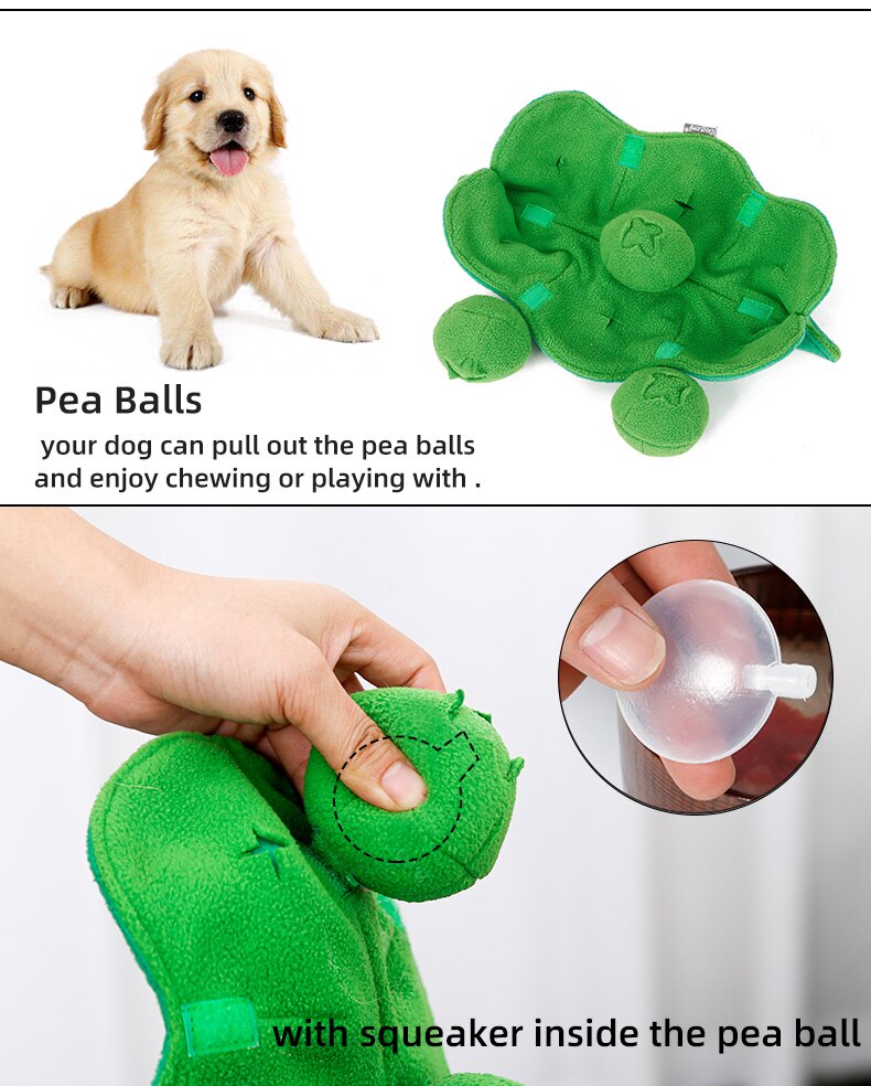 1. The main fabric of the pea dog sniffing toy is polar fleece, which is skin-friendly and soft, and it is good for teething and playing;
