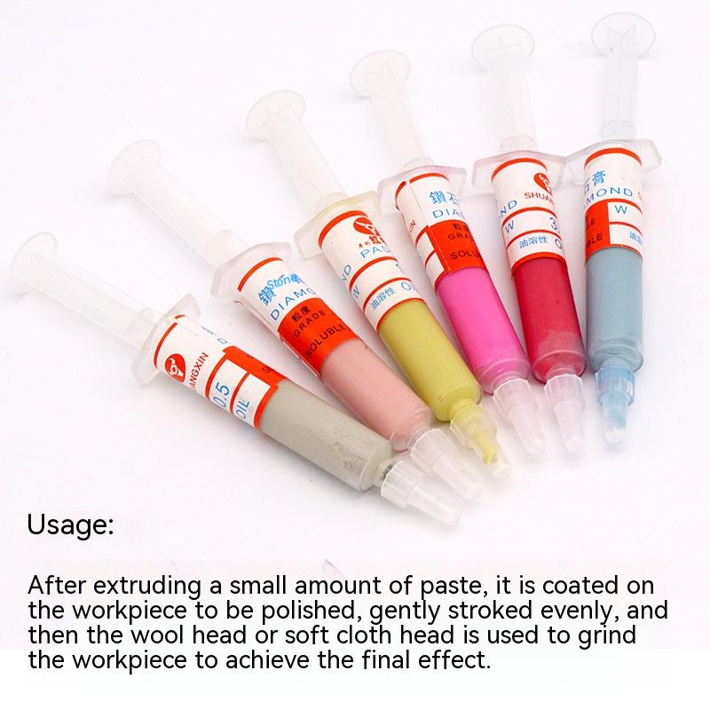 Squeeze a small amount of paste and apply it to the workpiece that needs to be polished. Gently stroke it evenly, and then use a wool head or a soft cloth wheel to grind and polish the workpiece to achieve the final effect.