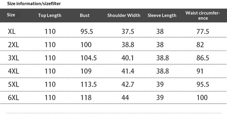 Sizes: XL [fits 90–105 jin], 2XL [fits 105–120 jin], 3XL [fits 120–135 jin], 4XL [fits 135–150 jin], 5XL [fits 150–160 jin], 6XL [fits 160–170 jin]