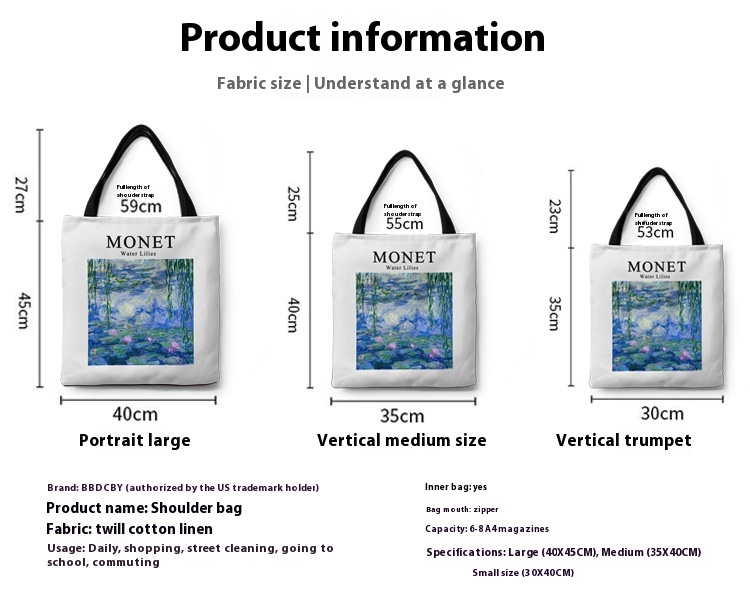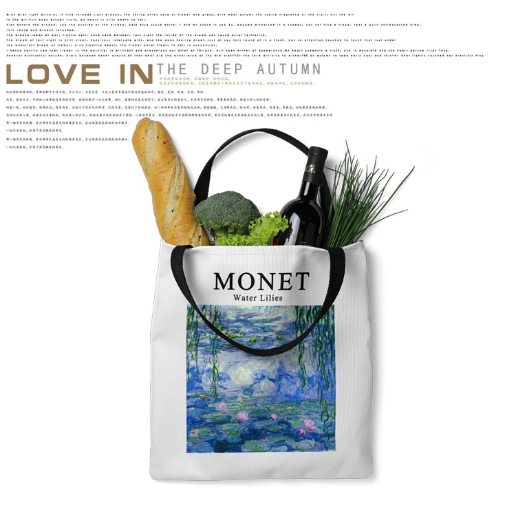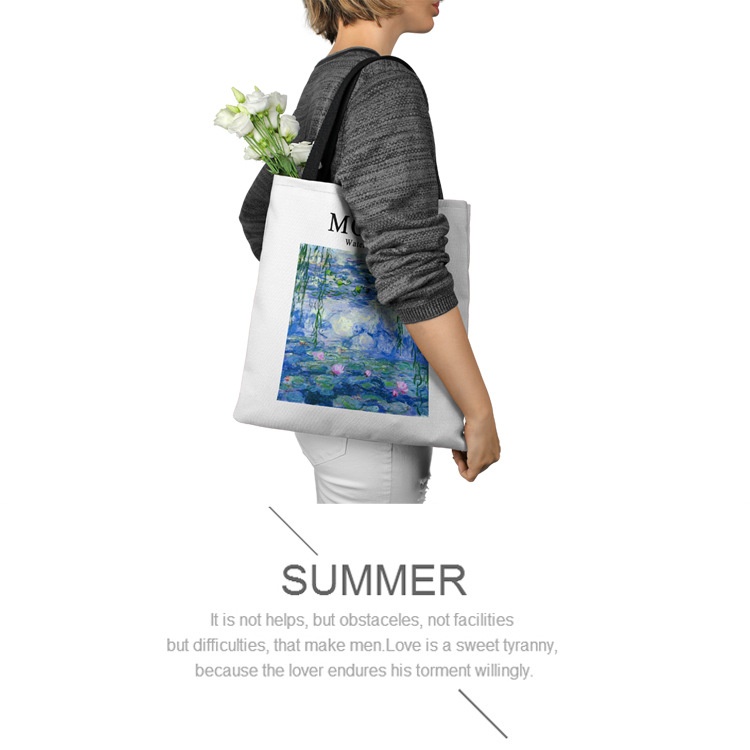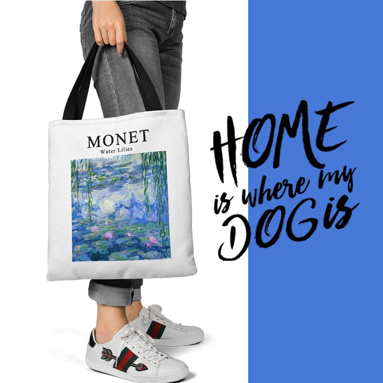 Color: Monet small purple flower, Monet poppy, Monet water lily, Paul charm, Monet weeping willow water lily