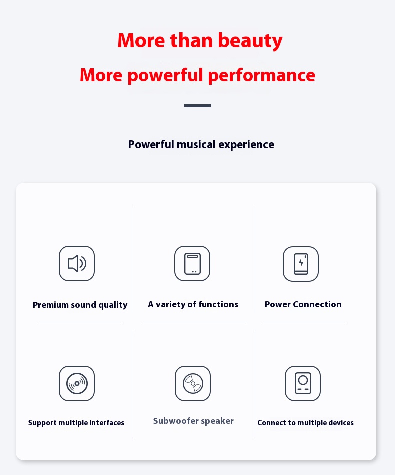Connection method: Fiber optic+ARC (HDMI)+LINE IN+USB+Bluetooth