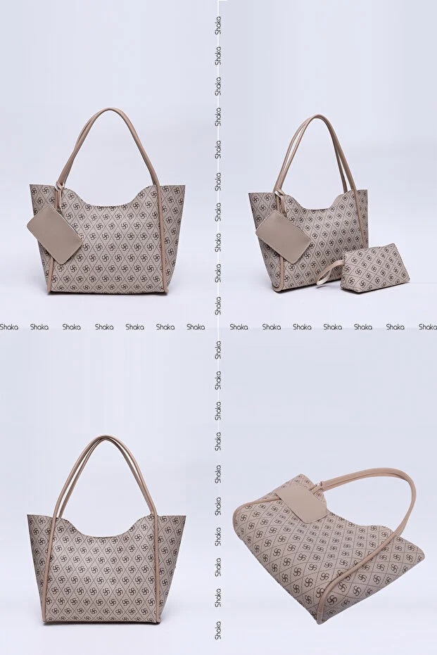 Monogram Mink SHK108 Faux Leather Women Hand And Shoulder Bag With Wallet And Makeup Bag