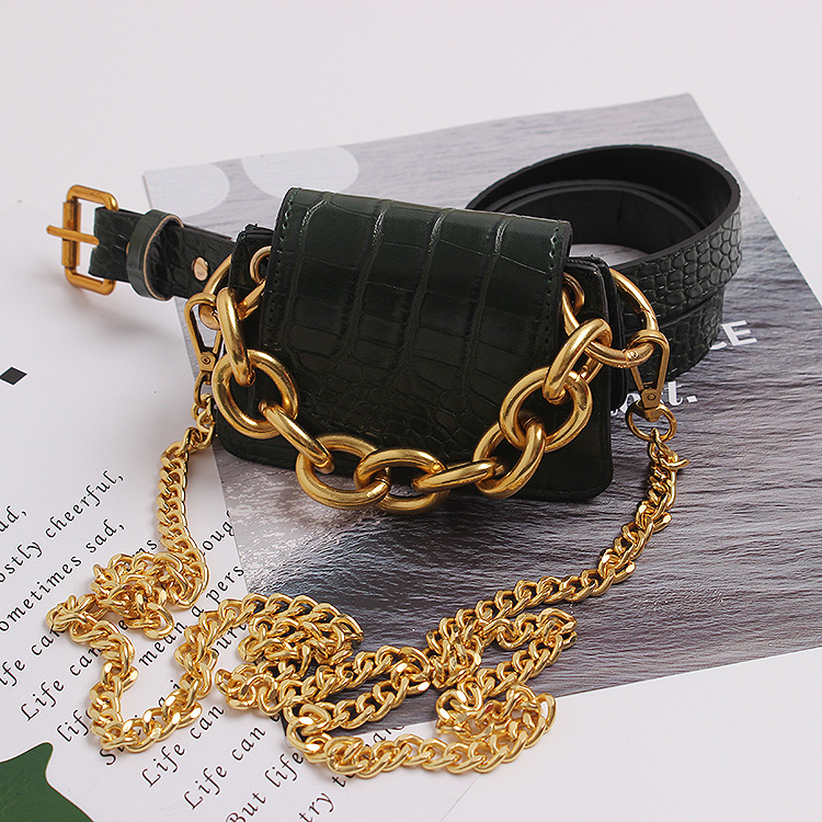 Material: crocodile pattern PU leather + gold chain