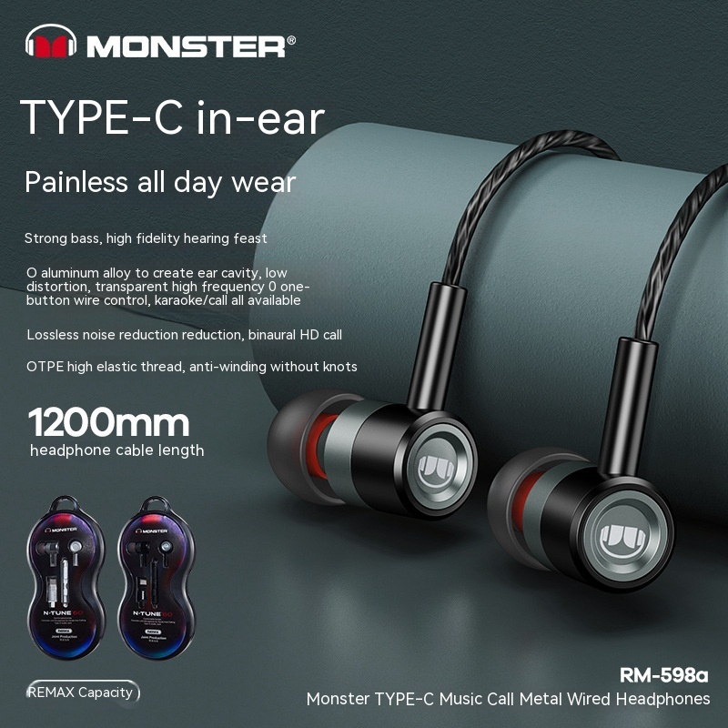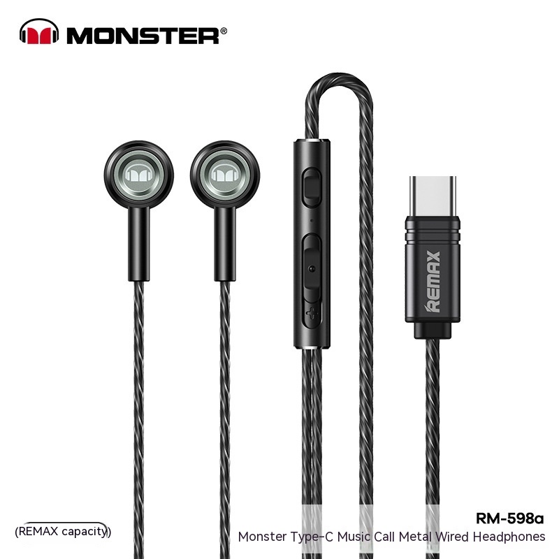 Monster Remax Metal In-Ears Earphone Tws Earbuds Wired Type-C Lightning Round Hole E-Sports Headphones For A Pple H Uawei Xiaomi