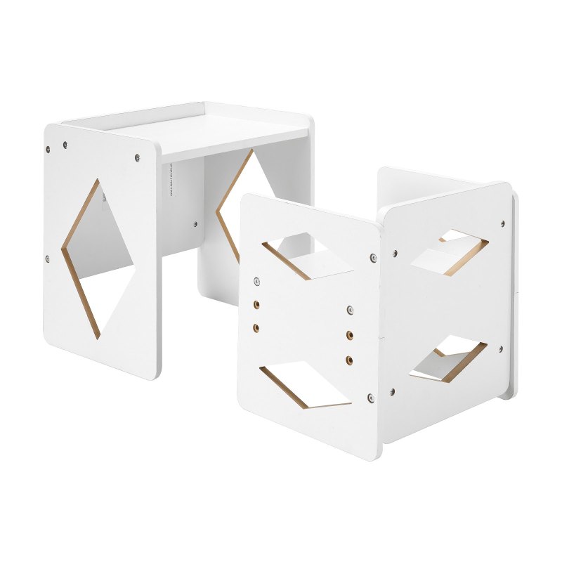 Adjustable Height: Our children's Montessori weaning table and chair set offers three height adjustment options (5.2 in / 133 mm, 6.6 in / 168 mm, 8 in / 204 mm) to accommodate your child’s needs at various growth stages.