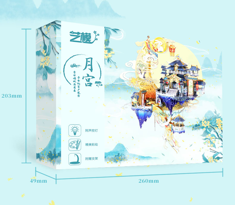 4 styles: Moon Palace (with bracket + sticker) + voice control lamp + art tool kit + No. 21 dust box