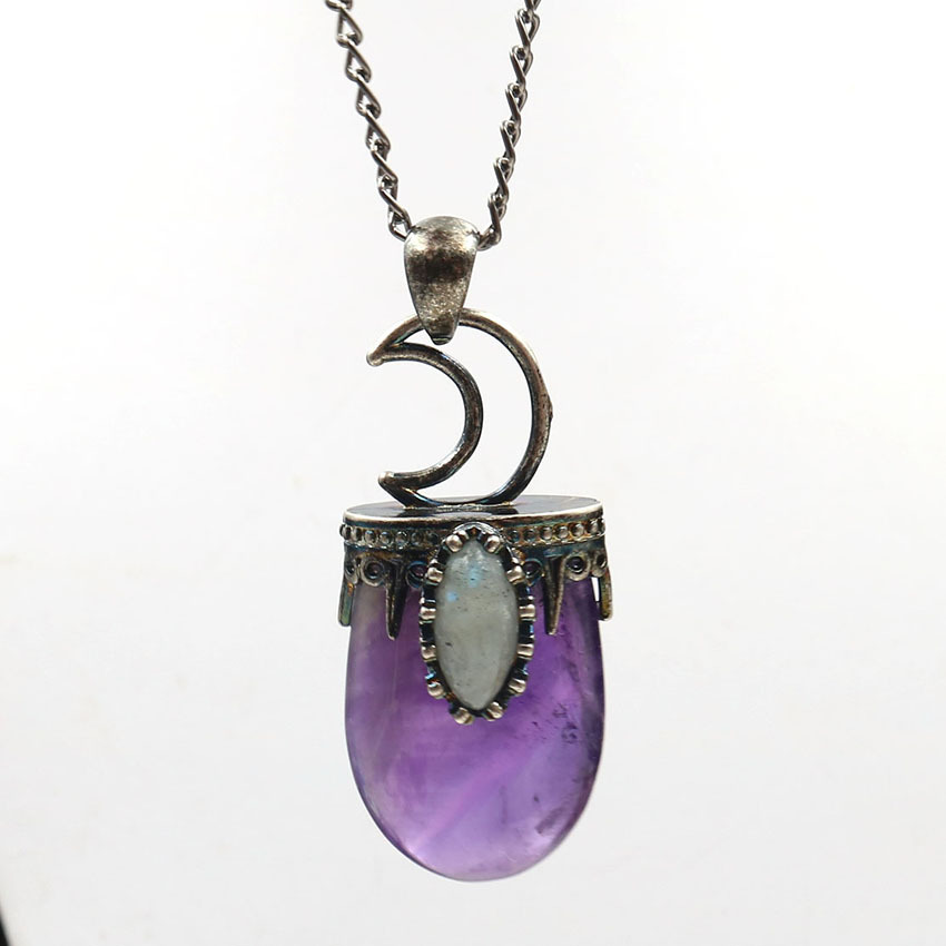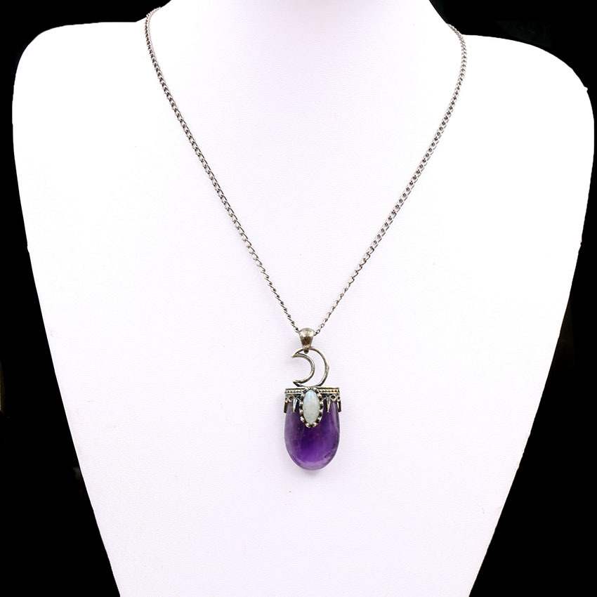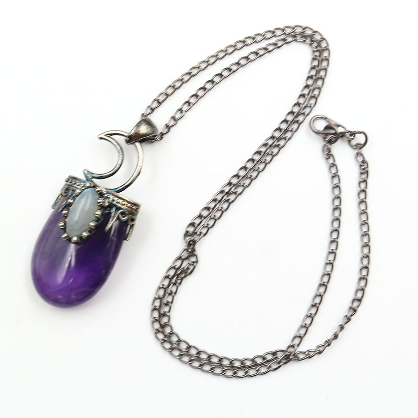 [Size]: 45x20mm, Chain Length: 80cm[ Material ] : Natural amethyst agate[ Type ] : Pendant necklace[Element]: Natural simplicity