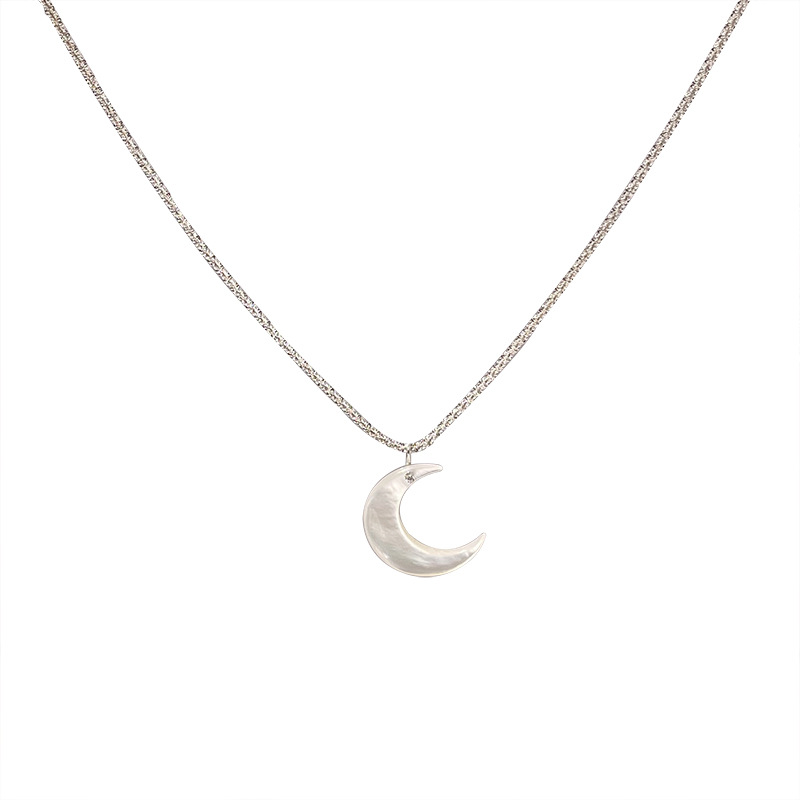 Color: XL766 Starry Sky Crescent Necklace (Plain Silver)
