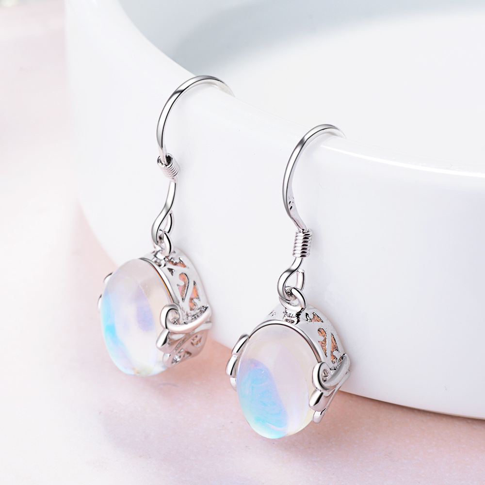 Our Moon Stone Drop Earrings feature beautiful moon stone gemstones adorned with a delicate silver setting. These earrings will add a touch of magic and elegance to your look.