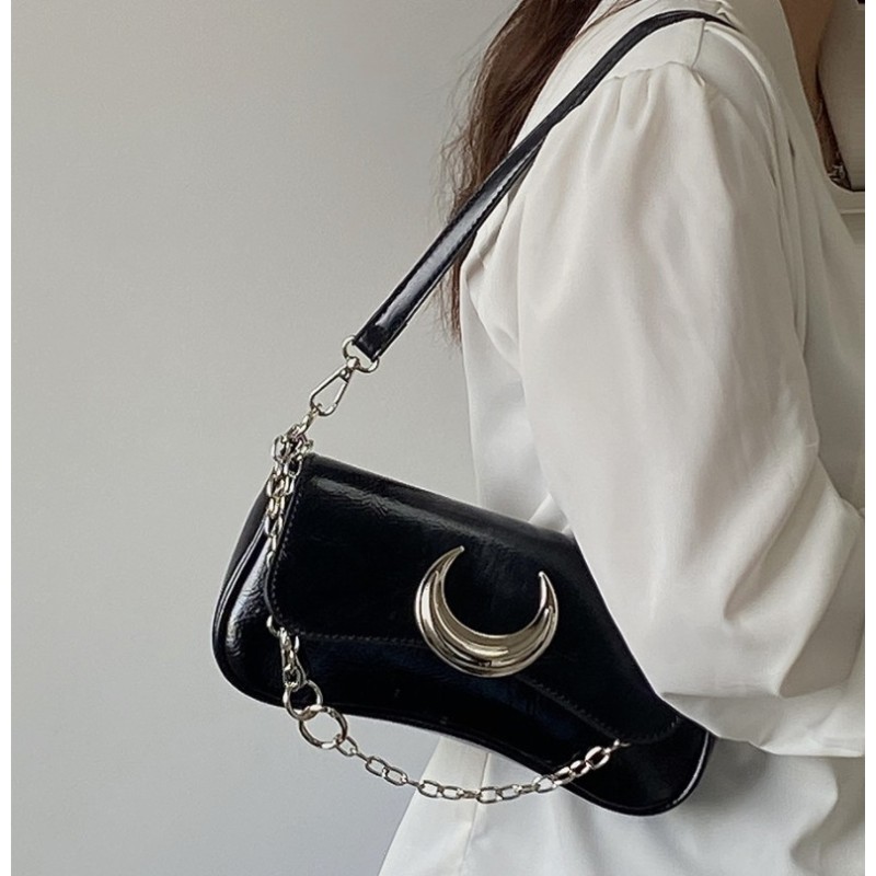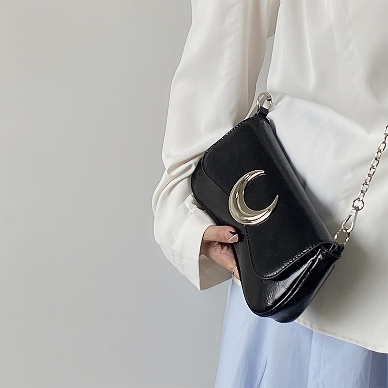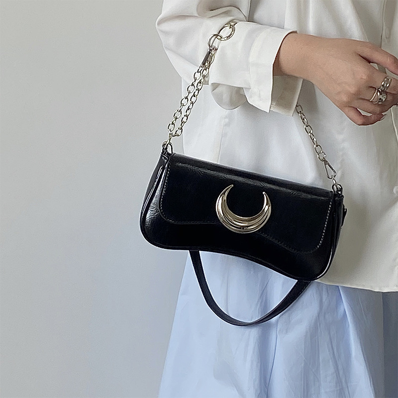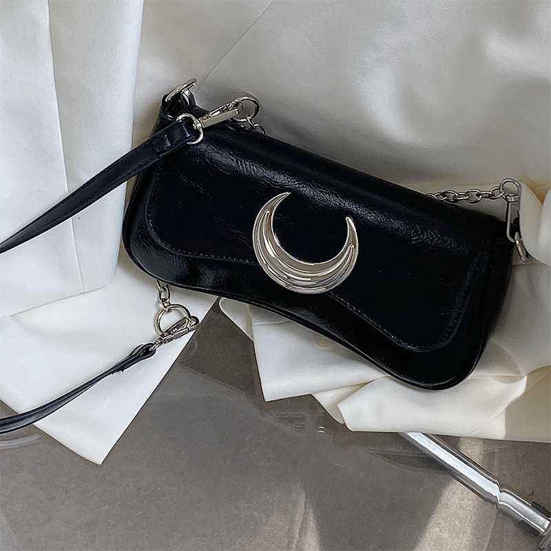 Moon Twist Lock Shoulder Bag Black Underarm Bag