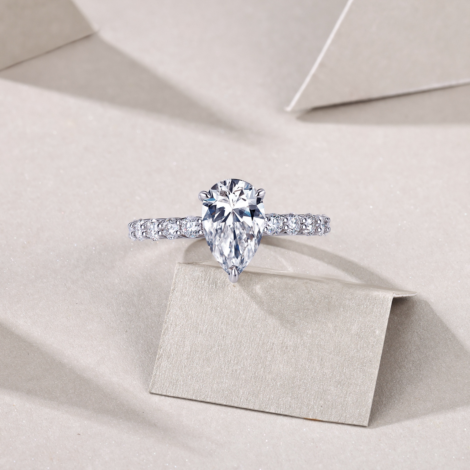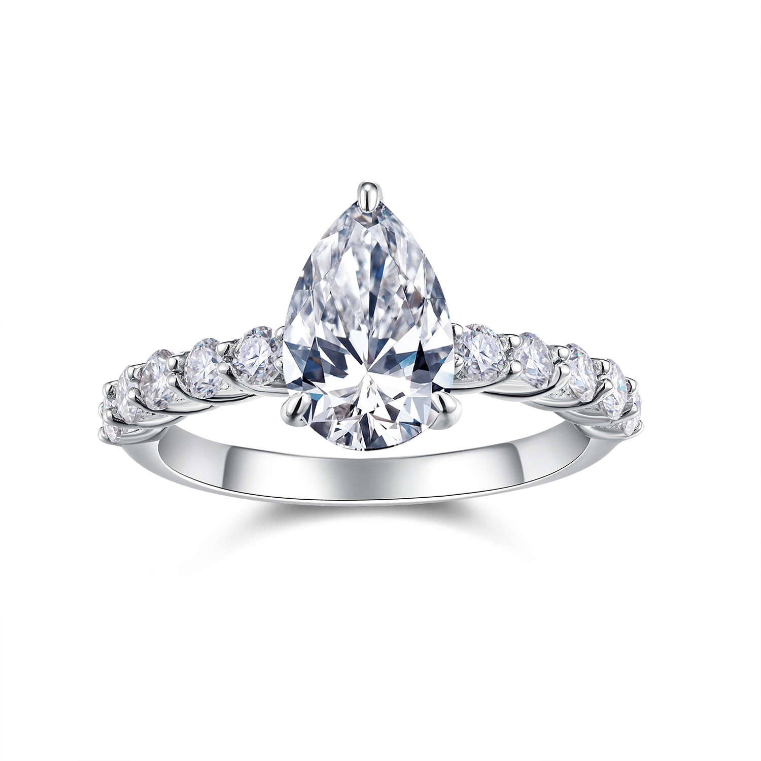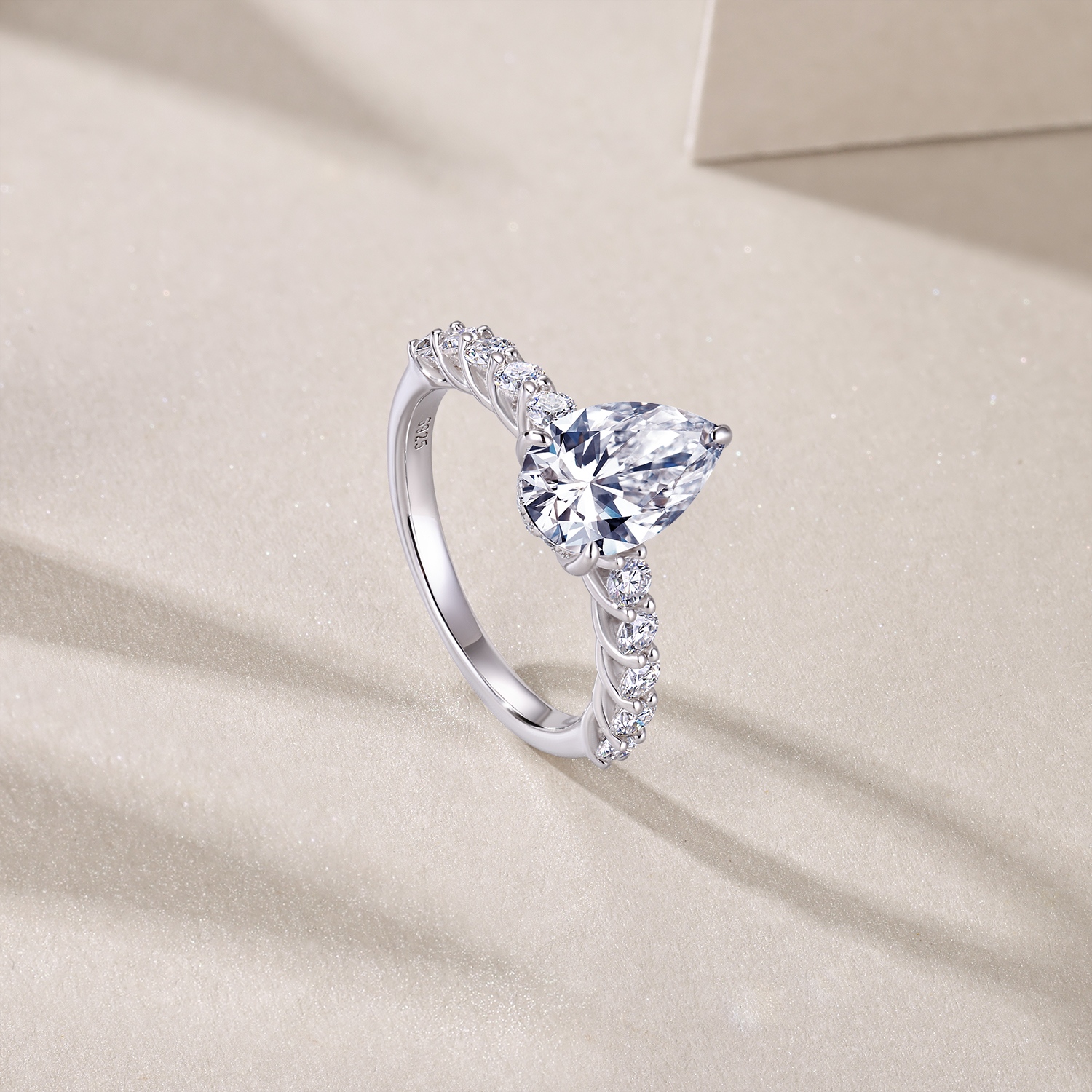 Moonlight Water Drop - A Wedding Ring Set With Top-quality Pear-shaped Moissanite S925 In Silver And Platinum-plated. The Ring Can Be Inspected With A Diamond Pen