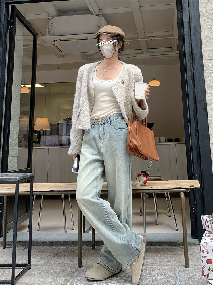 Color: thick velvet blue trousers, thick velvet blue lengthened