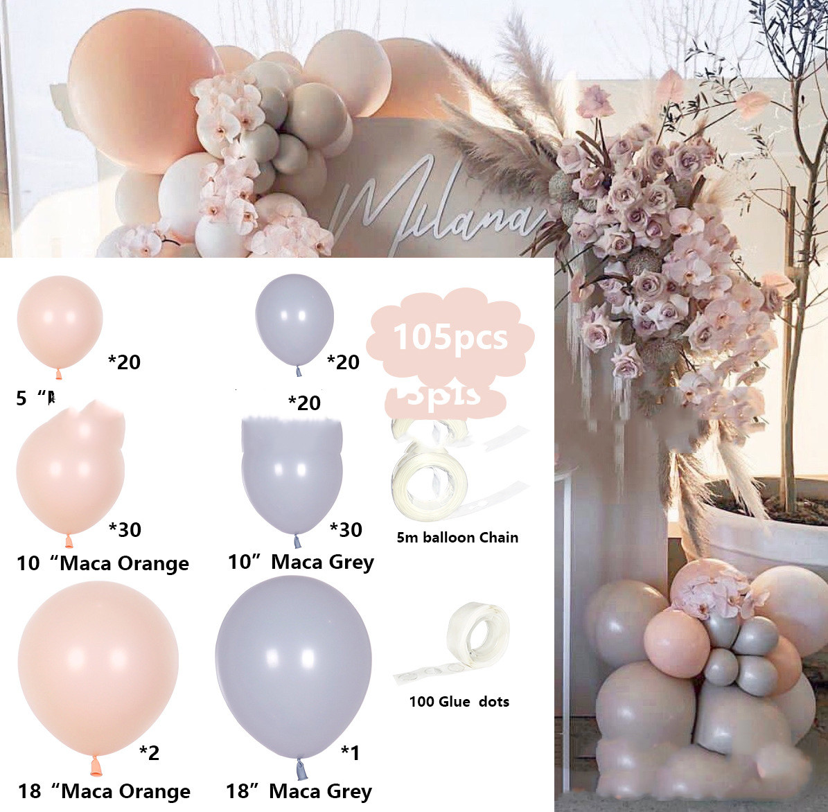 Morandi Balloon Chain Set Birthday