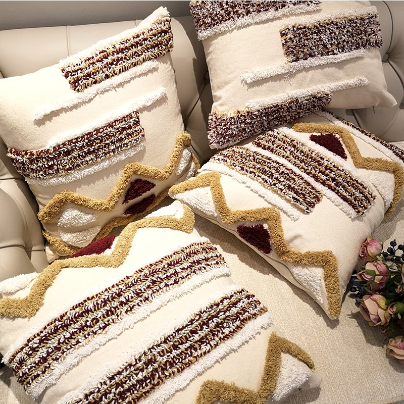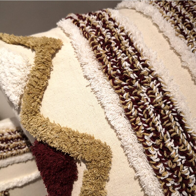Moroccan style Cushion Cover Pillow Case Luxury Handmade Geometric Stripe Brown For Sofa Bed Home Decorative Canvas 45x45cm