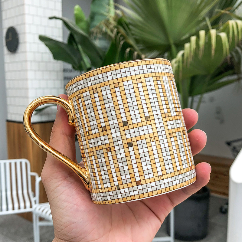 Mosaic Gold Ceramic Mug Business English Feng Shui Cup