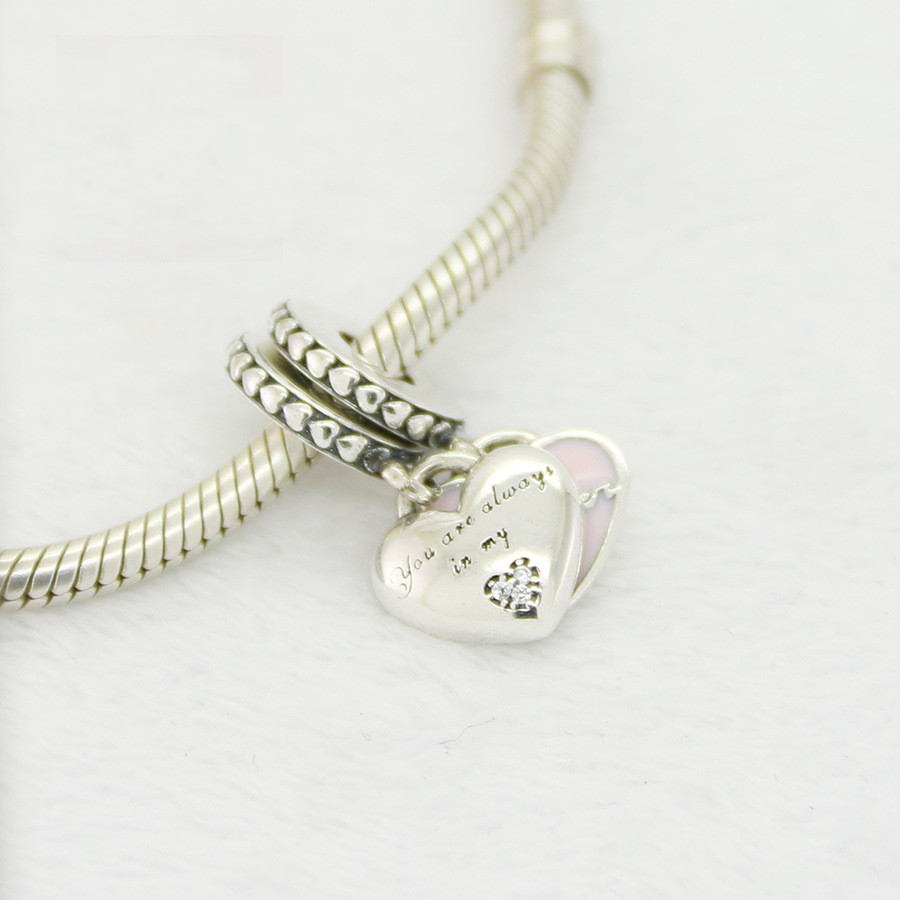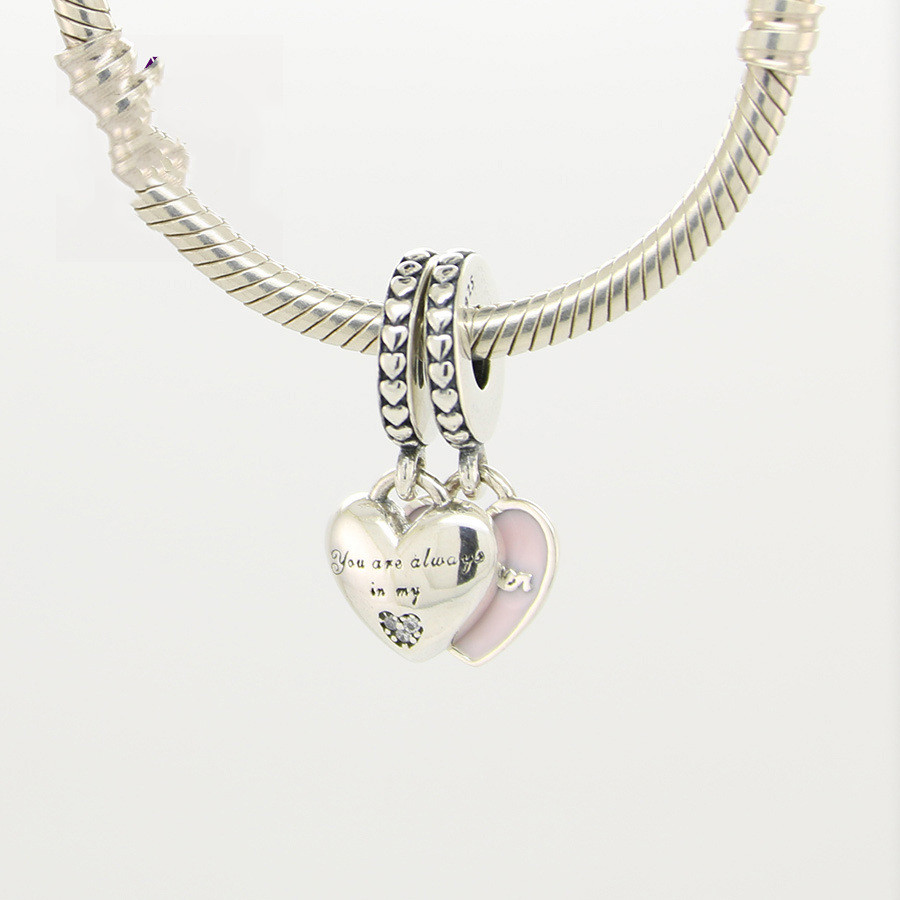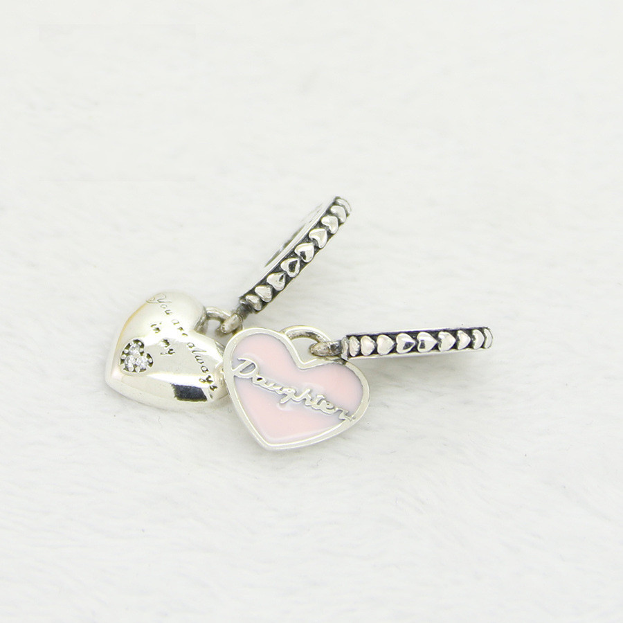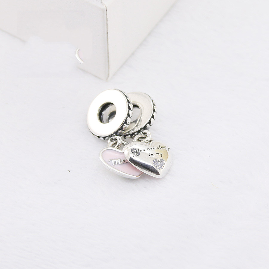 Type: loose beadMaterial: SilverTreatment process: gutta perchaPurity: 925 SilverStyle: mother daughter concentric Pink Double Love Pendant