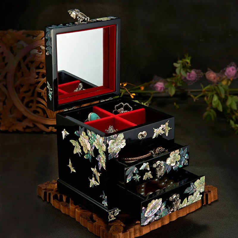 Materials: Wooden, abalone shell, white lip shell, paint powder, green paint
