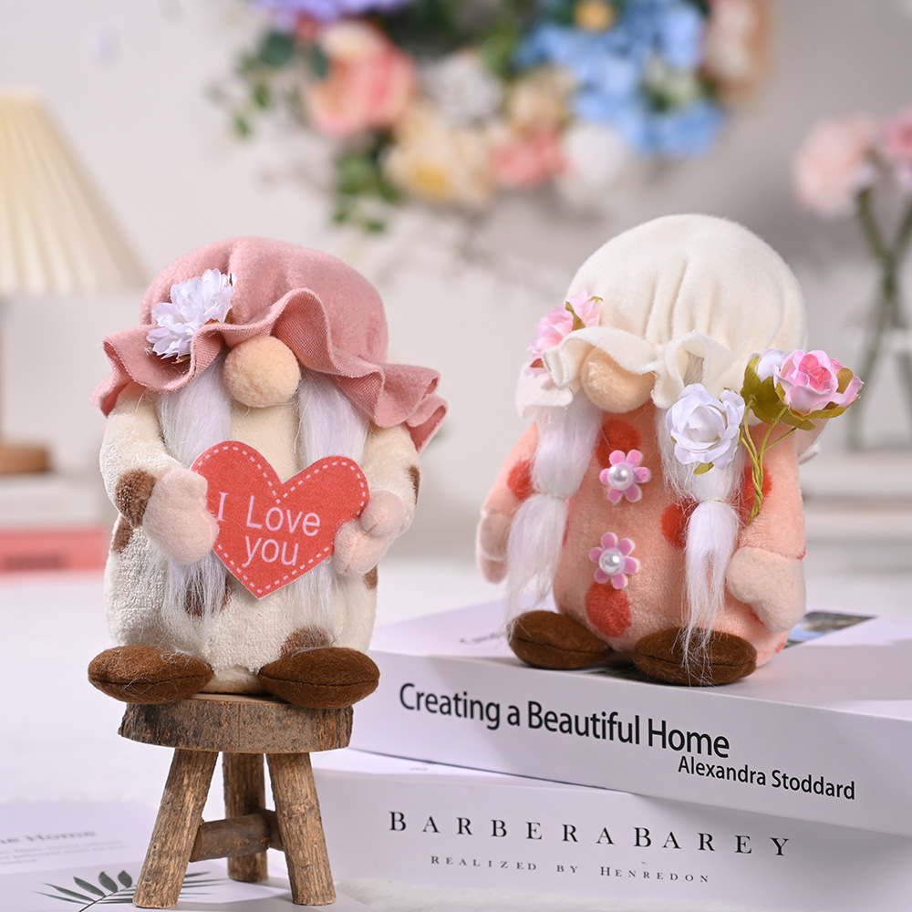 Color: Mother's Day holding a love faceless doll doll pink hat, mother's day holding a bouquet faceless doll white hat
