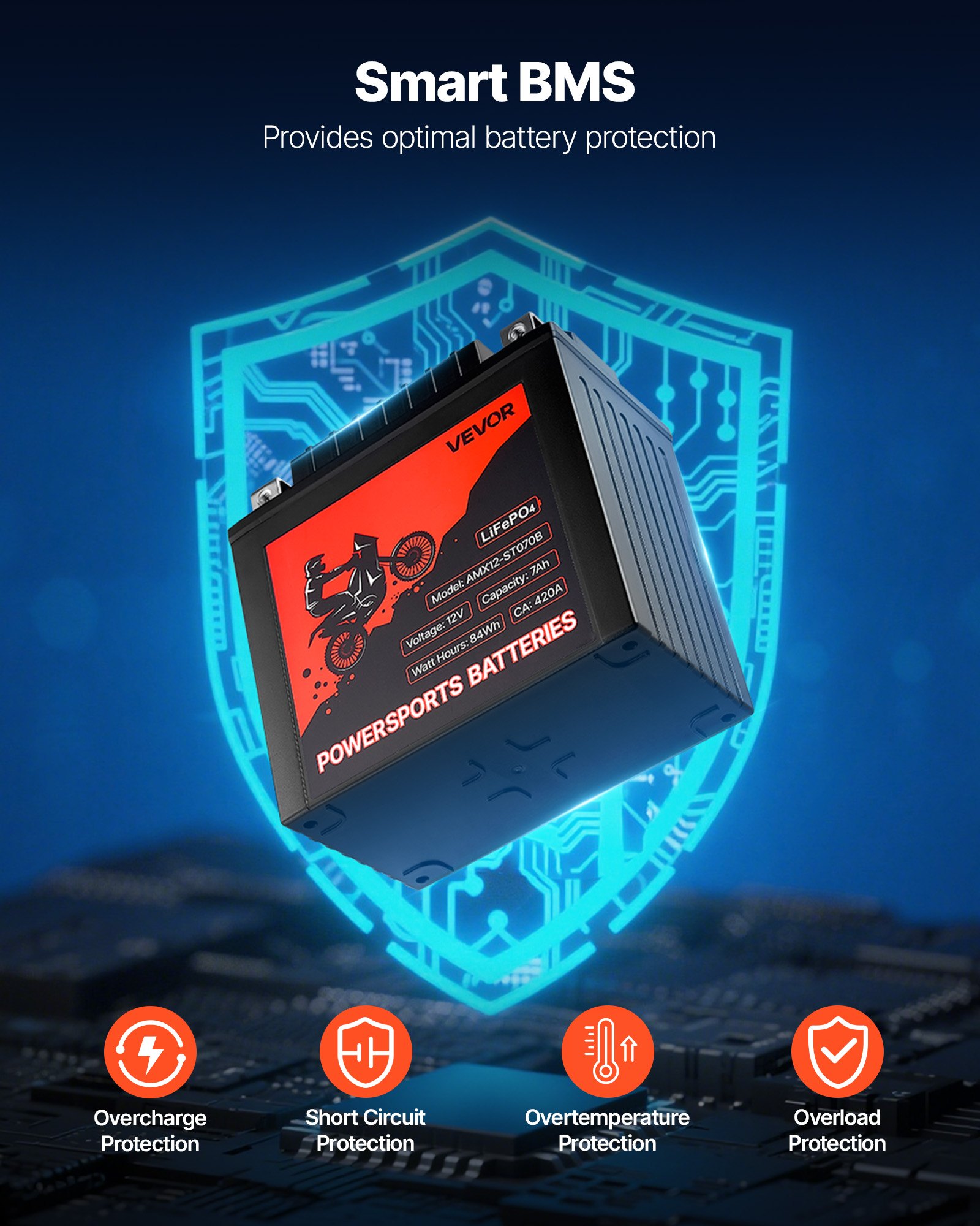 Secure and Reliable: Equipped with an intelligent BMS that provides overcharge, short-circuit, and temperature protection, this sealed powersports battery ensures no acid leaks. It's more secure and more reliable than traditional lead-acid batteries