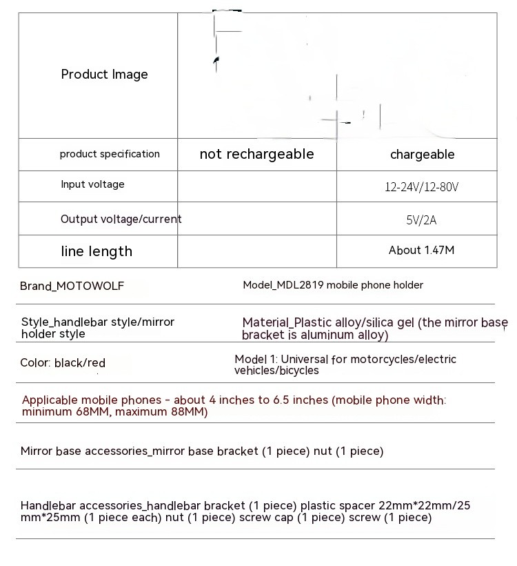 Applicable mobile phone: about 4-6.5-inch mobile phone (mobile phone width: minimum 68mm maximum 88mm)