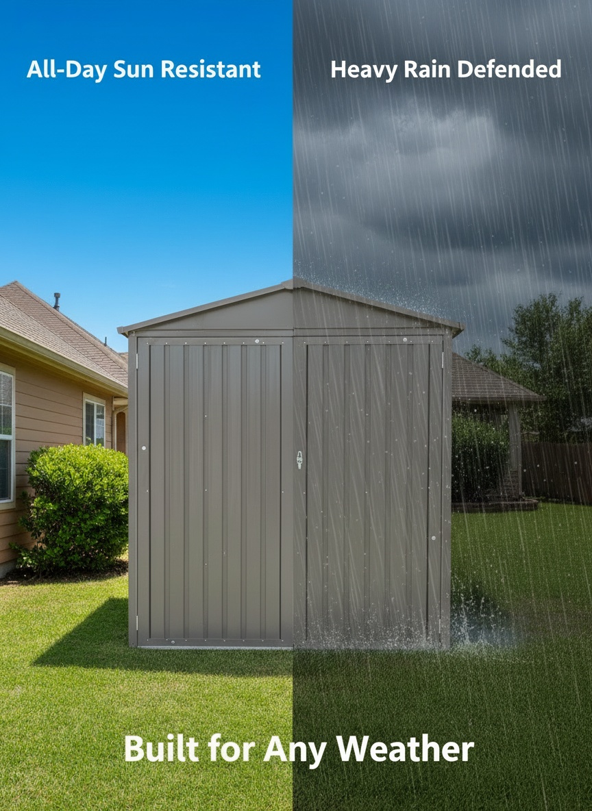 【Efficient Storage Solution】:This outdoor storage shed has no motorcycle tracks and fixtures, it can store other items. 【Perfect Dimensions for Home 】: The exterior dimensions of this outdoor storage shed are 66.2" L x 121" W x 79.7" H, offering ample space for sports equipment, tools, or anything else you need to store . It’s the perfect choice for sheds & outdoor storage needs. 【Strong and Durable Construction】:Its strong structure ensures stability while protecting your items from the elements, making it an ideal outdoor storage box. 【Easy to assemble】: The detailed instructions make it easy to complete the installation step by step.