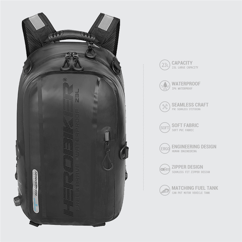 Material: PVC soft fabricCapacity: 23LWith or without rain cover: YesColour: Black