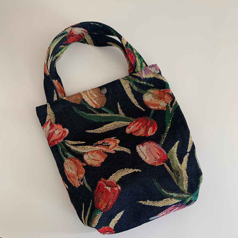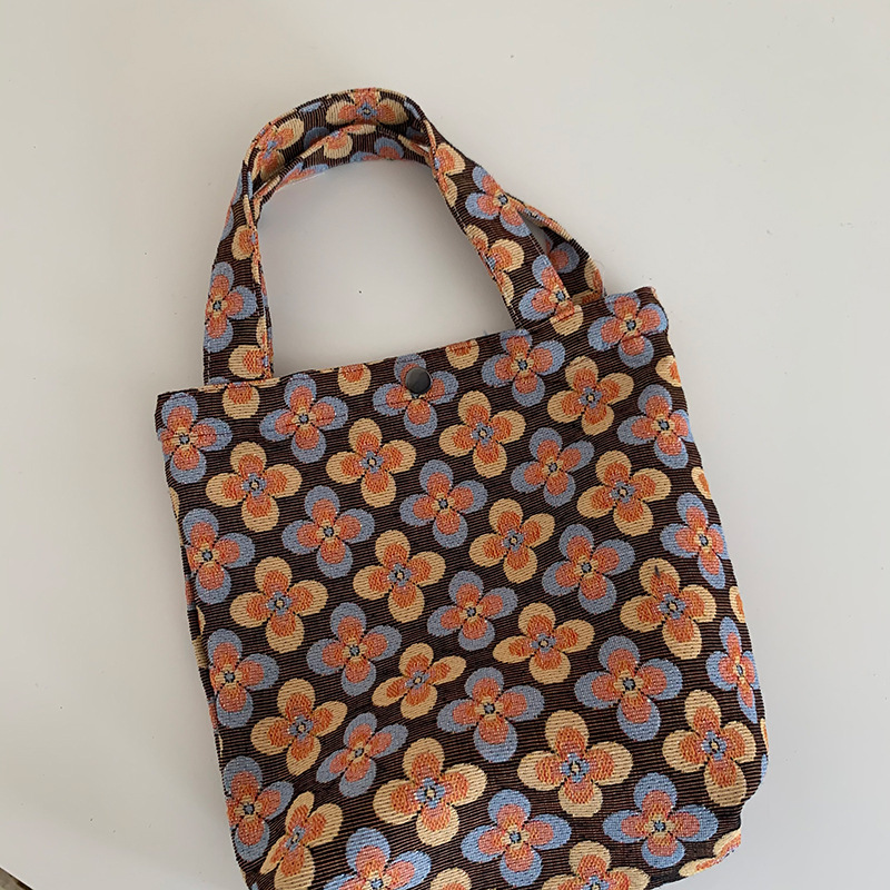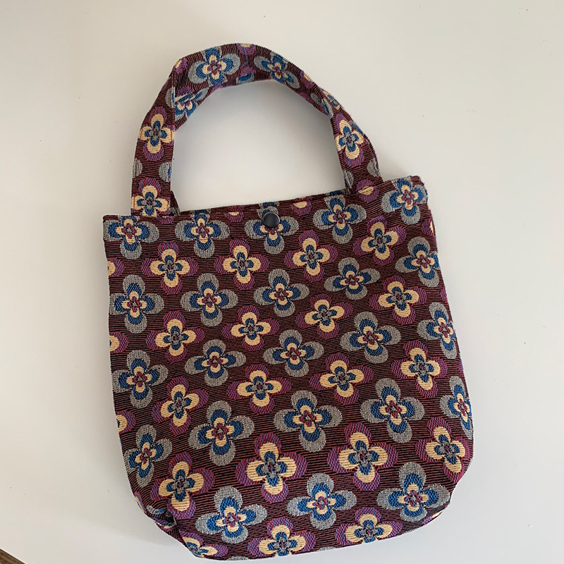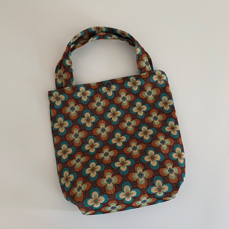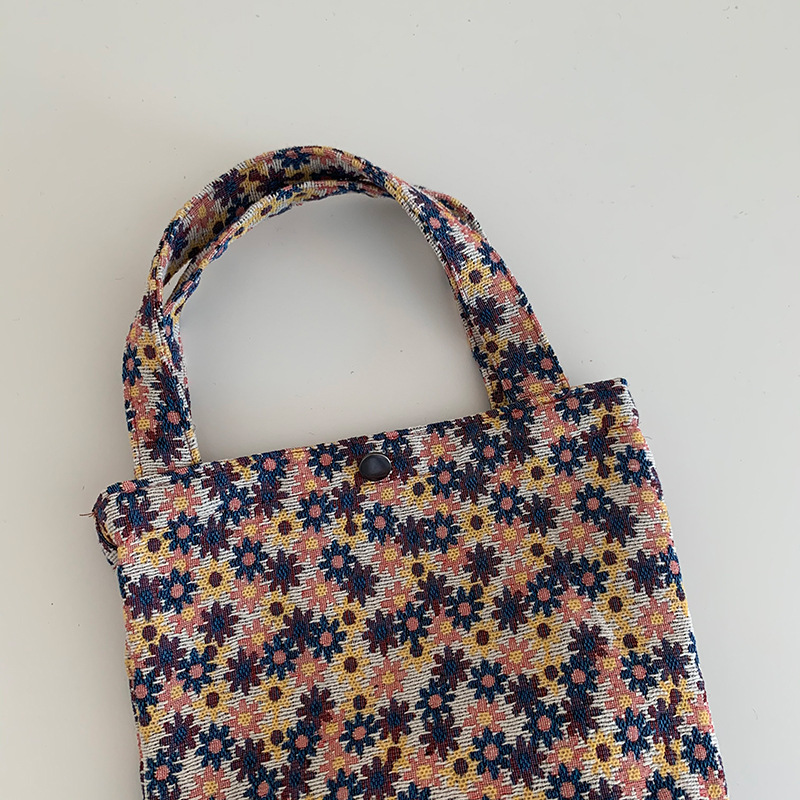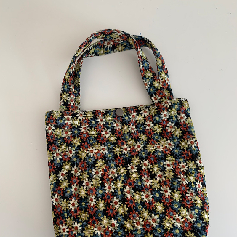 Mountain Vintage Jacquard Yarn-dyed Portable Ins Ladies Hand Bag