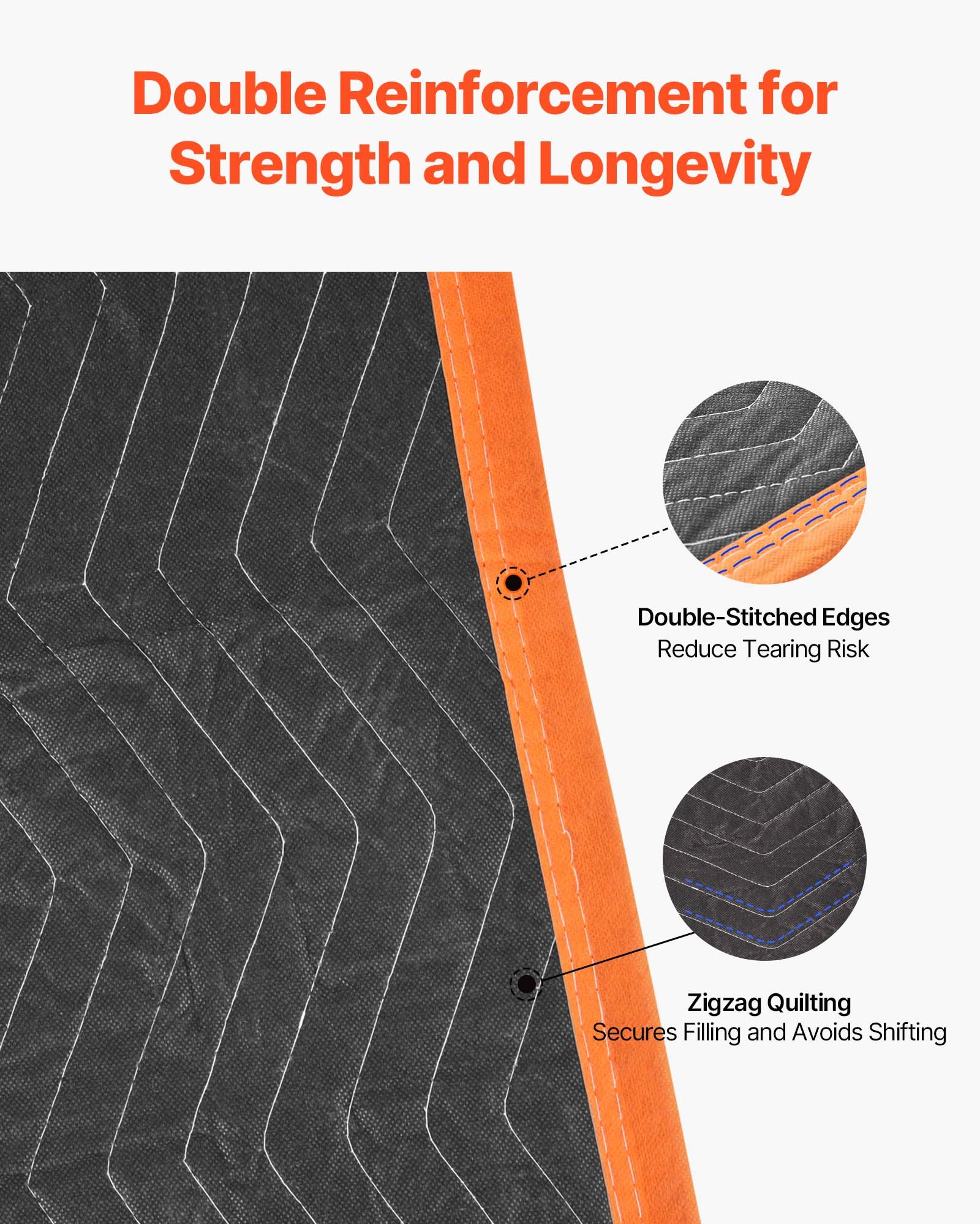 Reinforced Construction: Designed with double-stitched binding and zig-zag quilting, the moving blankets are strong at the edges and tear-resistant. The stitching secures fabric and filling together, boosting strength and ensuring long-lasting durability