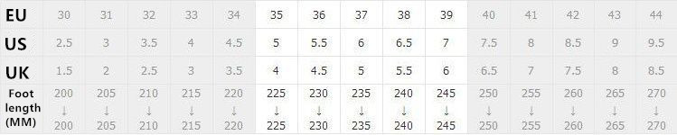 1. Asian sizes are 1 to 2 sizes smaller than European and American people. Choose the larger size if your size between two sizes. Please allow 2-3cm differences due to manual measurement.