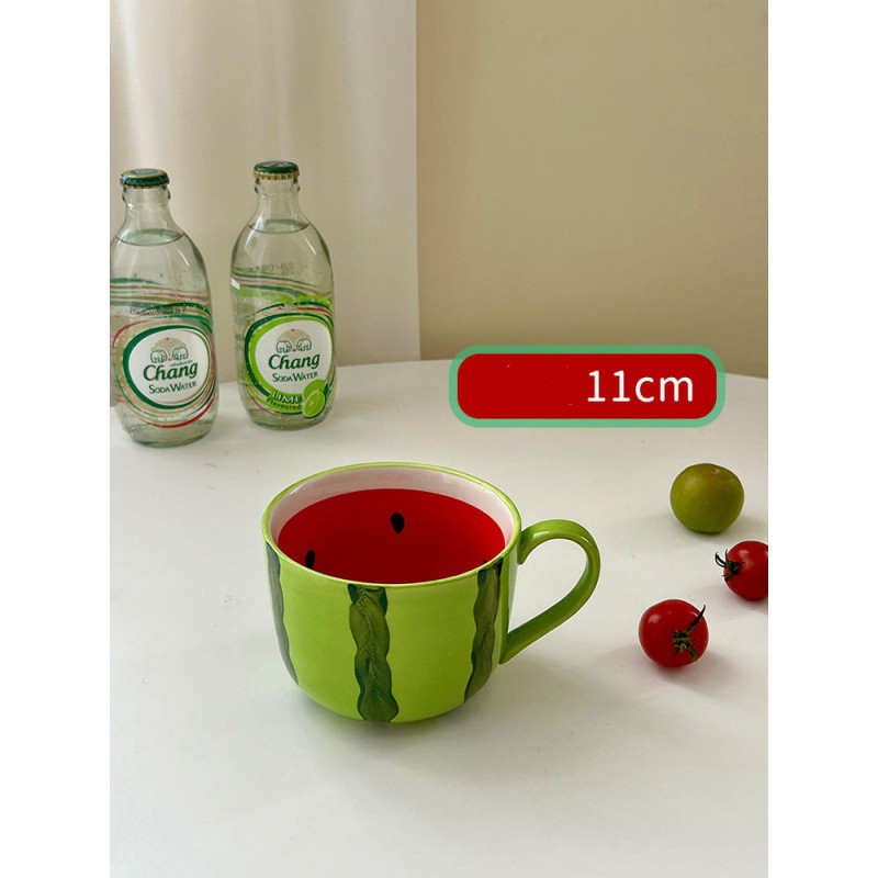 Color: greenStyle: watermelon cup+spoonMaterial: ceramic:Weight: cup 373g