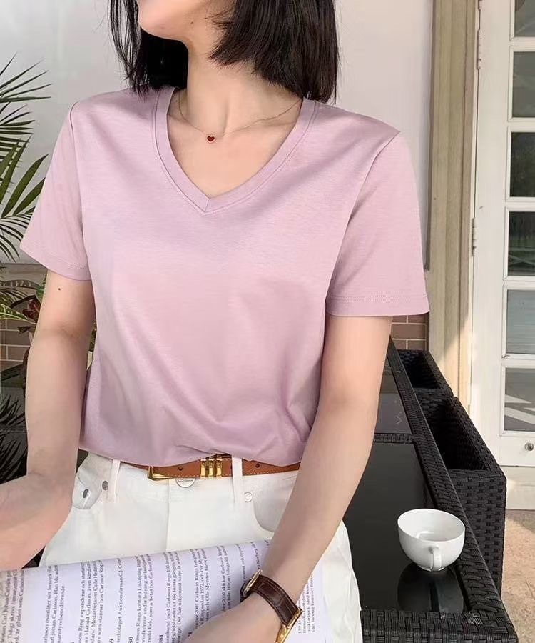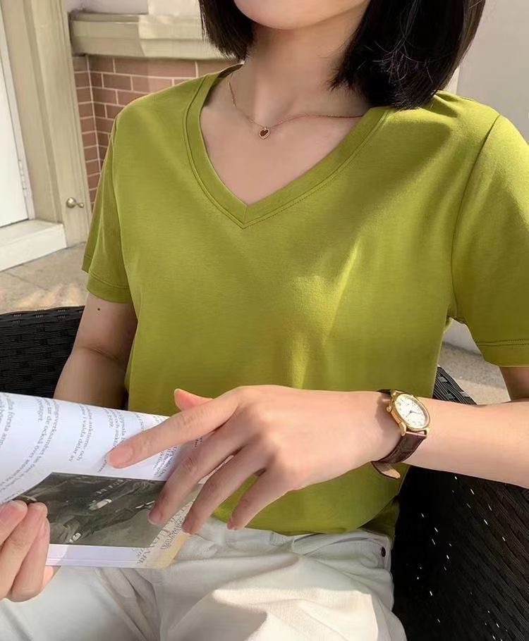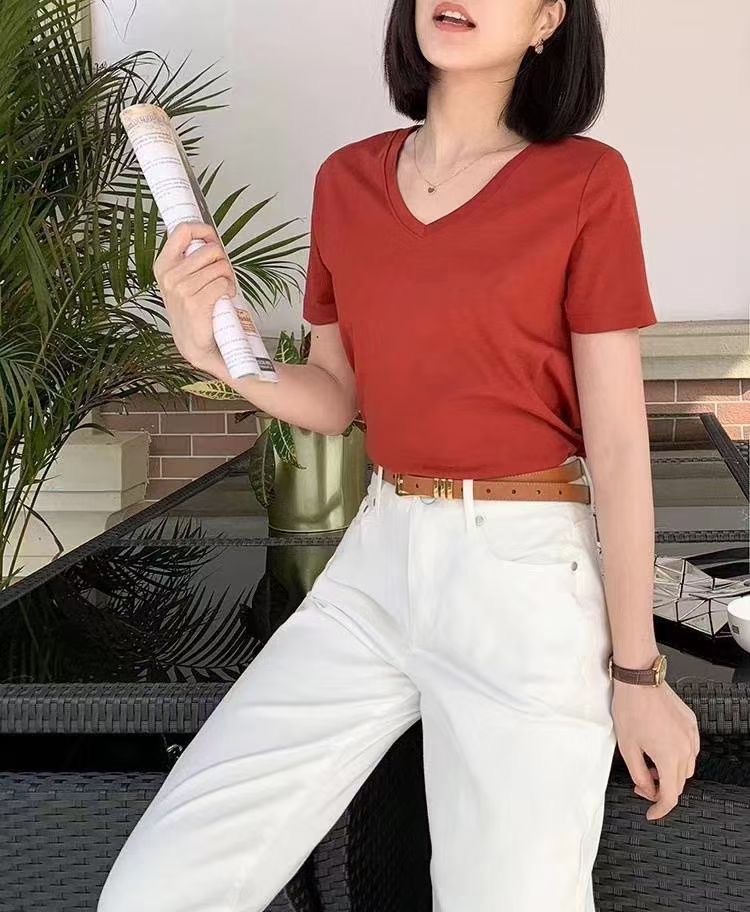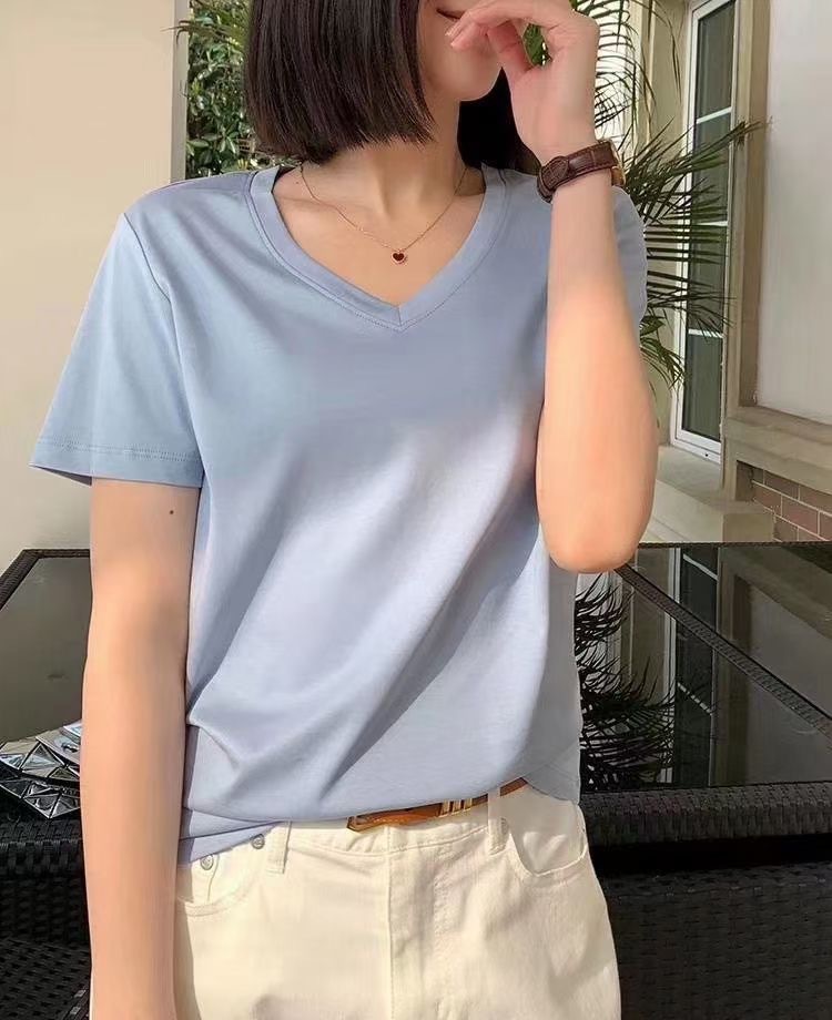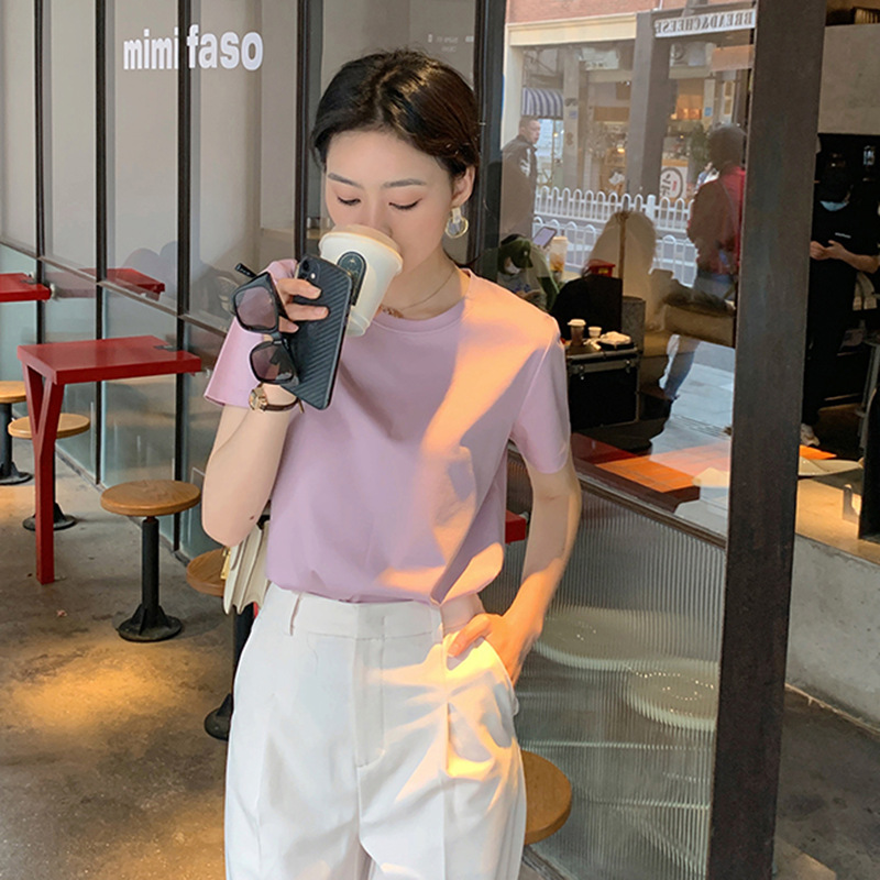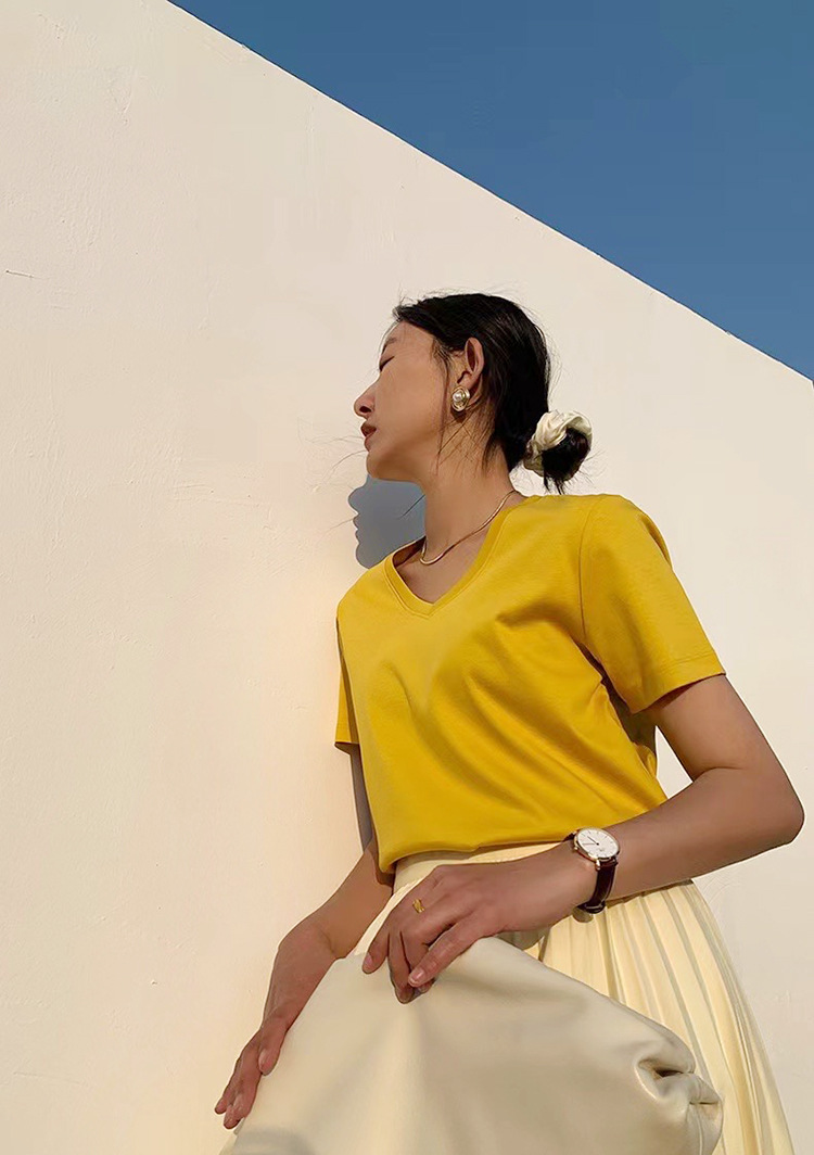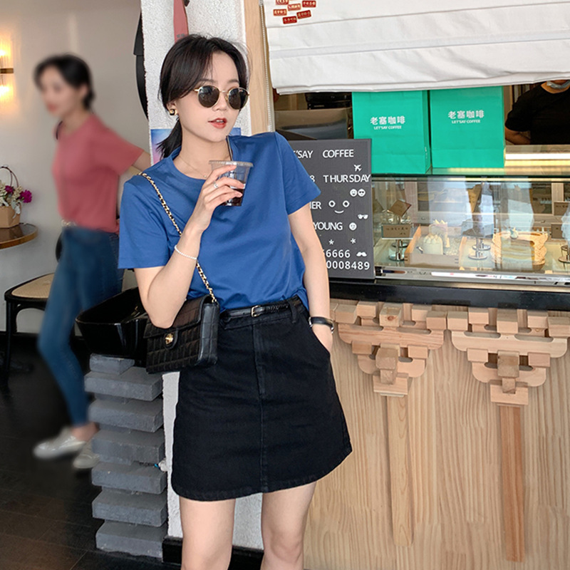 Color: Black round neck, white round neck, Klein blue round neck, soft sand round neck, avocado green round-neck, tomato red round-neck, baby blue round neck, cherry pink round-collar, Turtledove gray round neck, mango yellow round neck, coconut milk white round neck, sky blue with round collar, lime green round neck