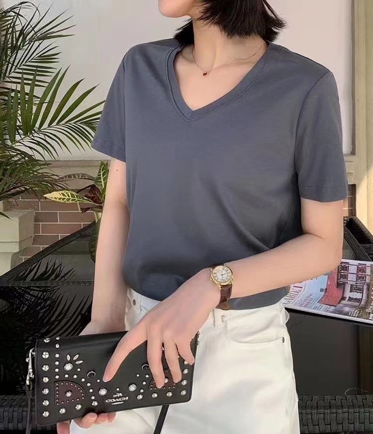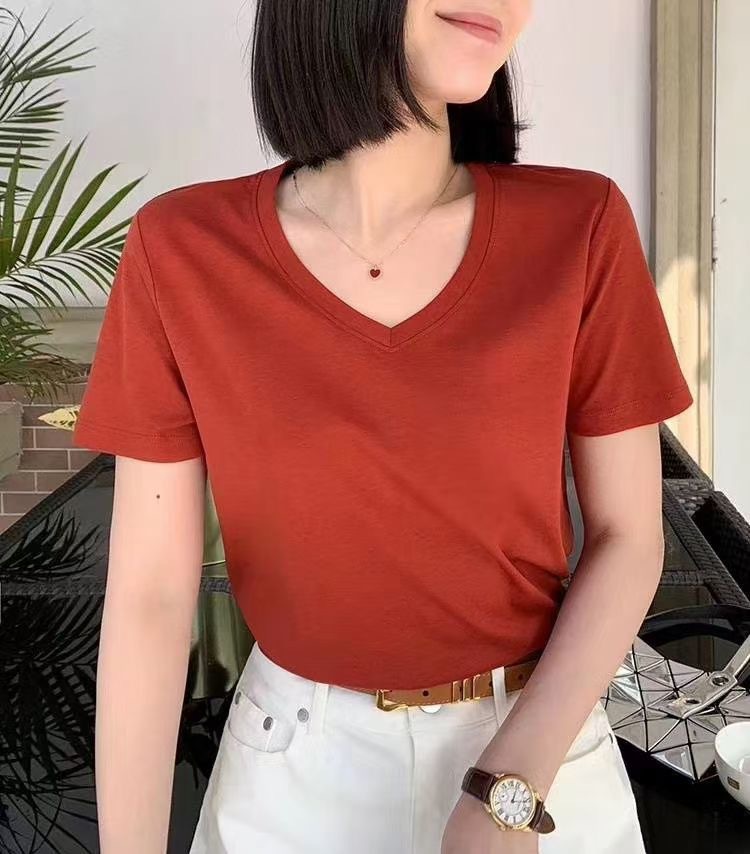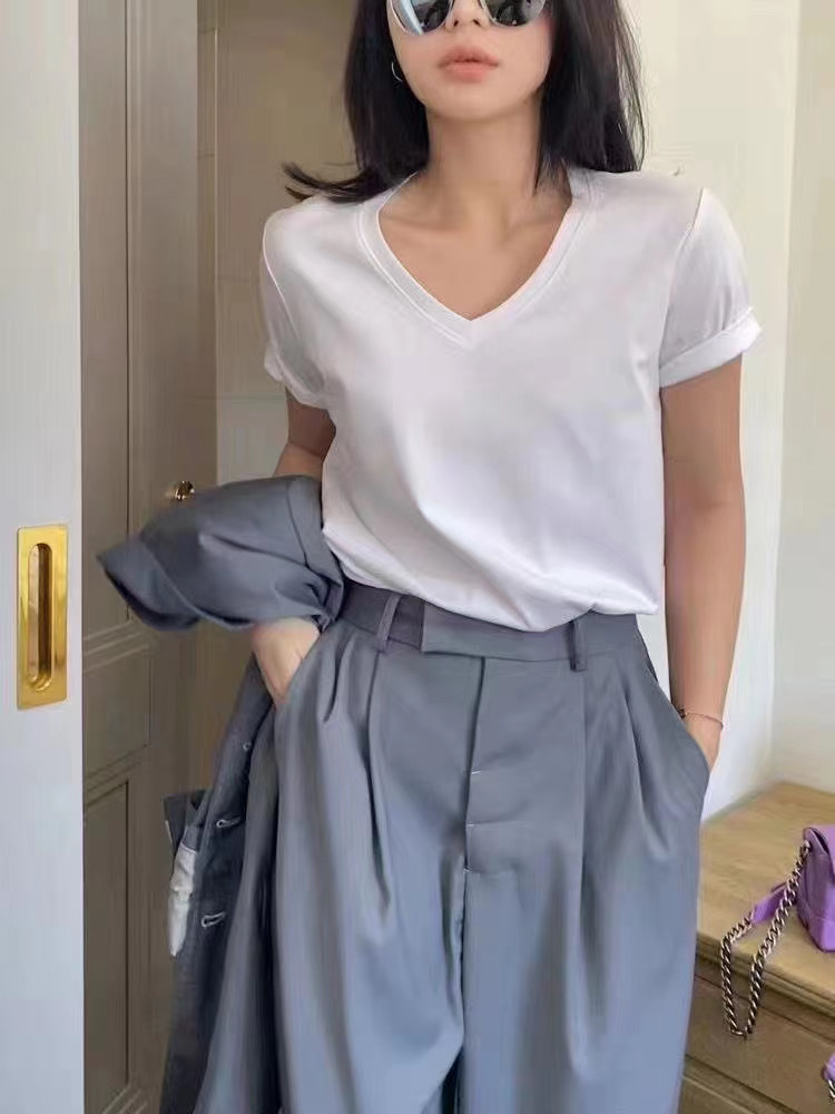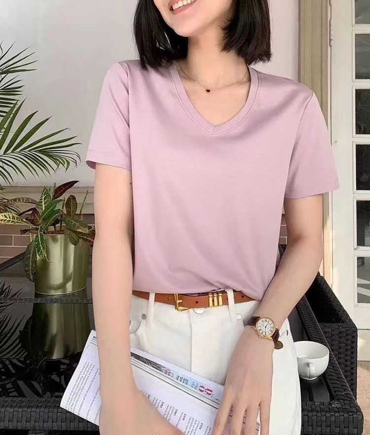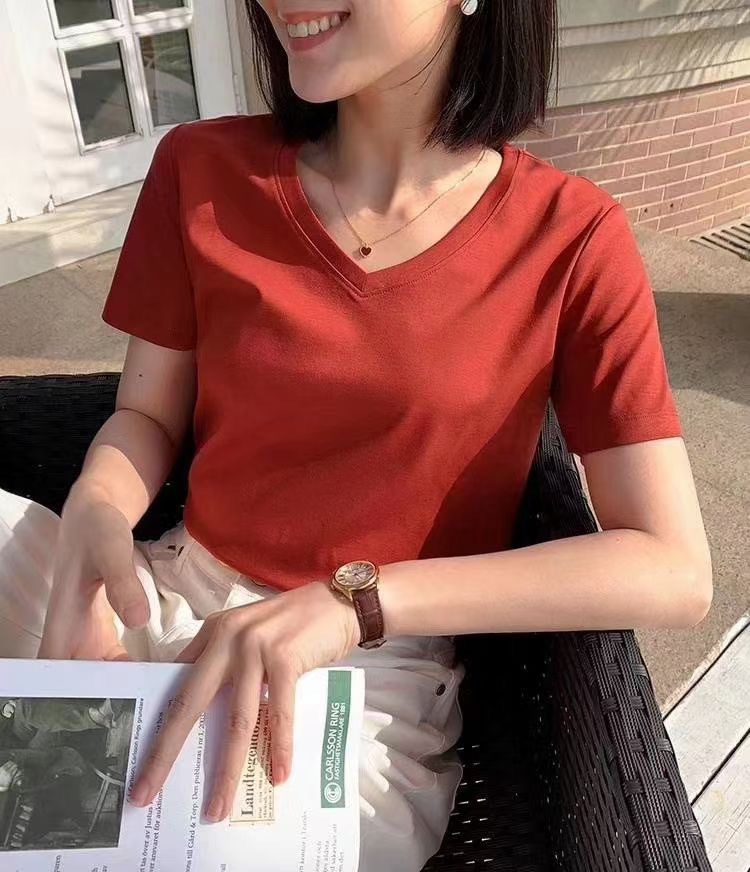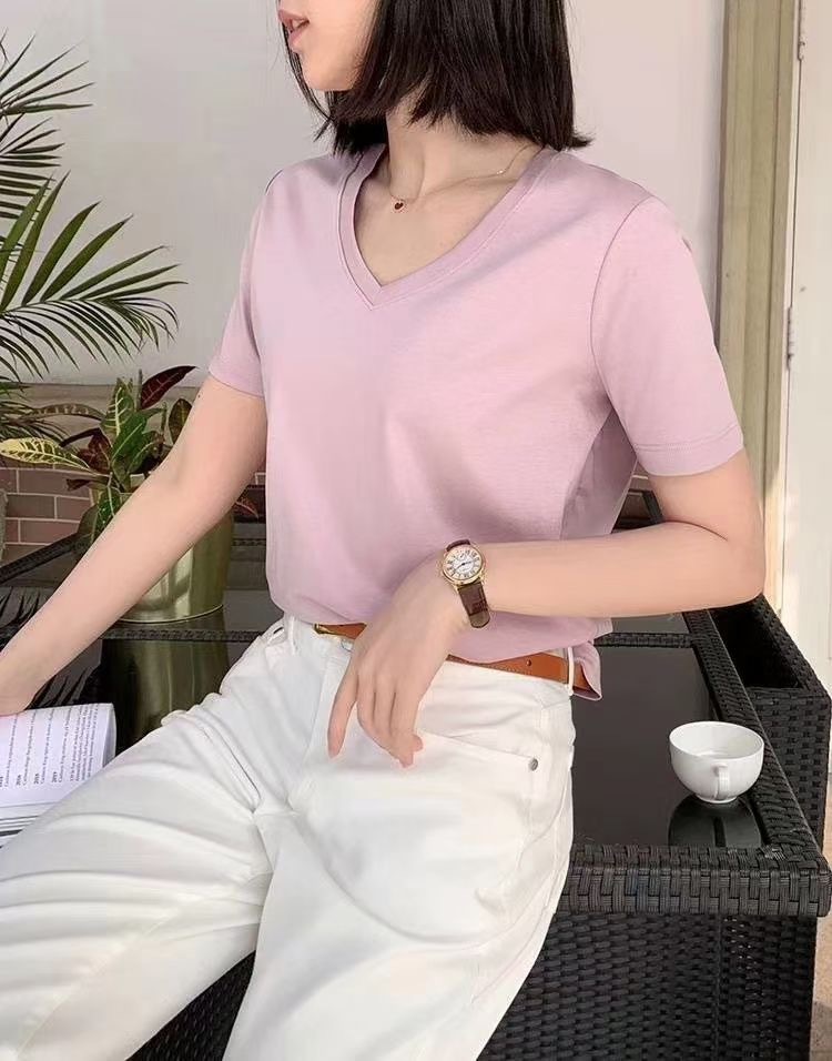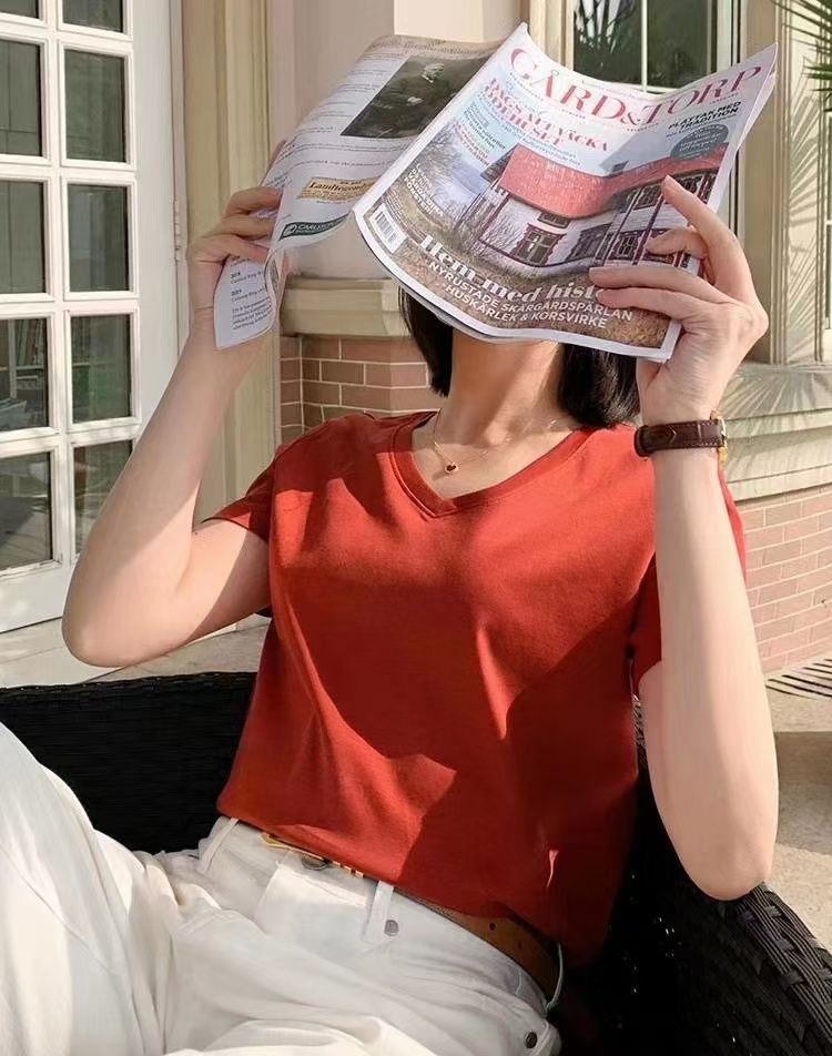 Color: Black round neck, white round neck, Klein blue round neck, soft sand round neck, avocado green round-neck, tomato red round-neck, baby blue round neck, cherry pink round-collar, Turtledove gray round neck, mango yellow round neck, coconut milk white round neck, sky blue with round collar, lime green round neck