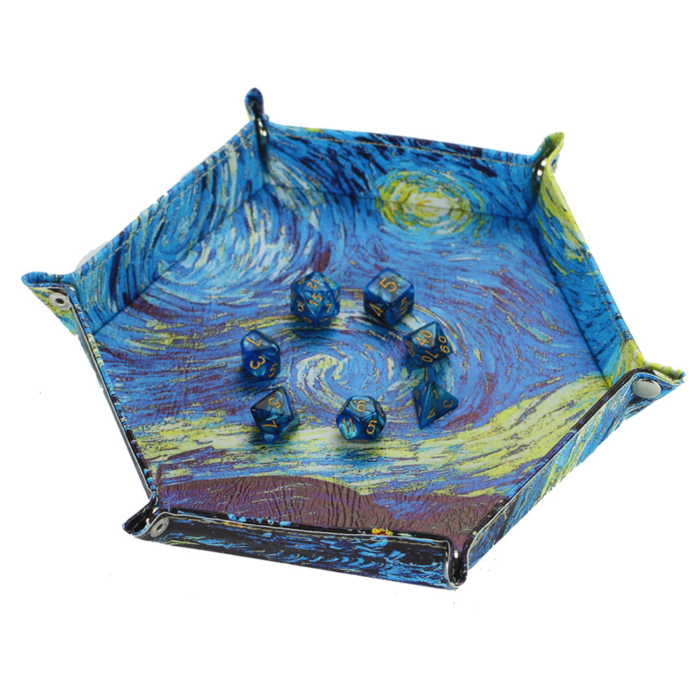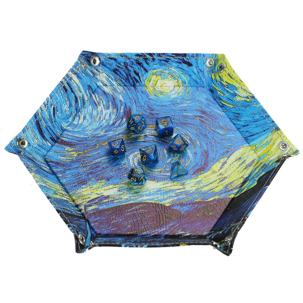 1 stytle: Hexagonal tray + dice-Van Gogh Starry Sky,