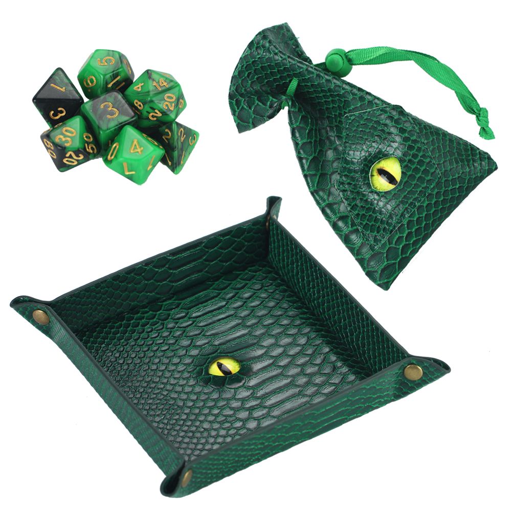 23 stytle: tray + dice + dice bag-green skin and yellow eyes,