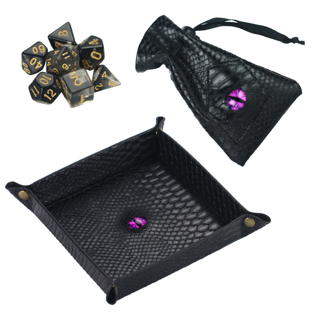 20 stytle: tray + dice + dice bag-black skin and purple eyes,