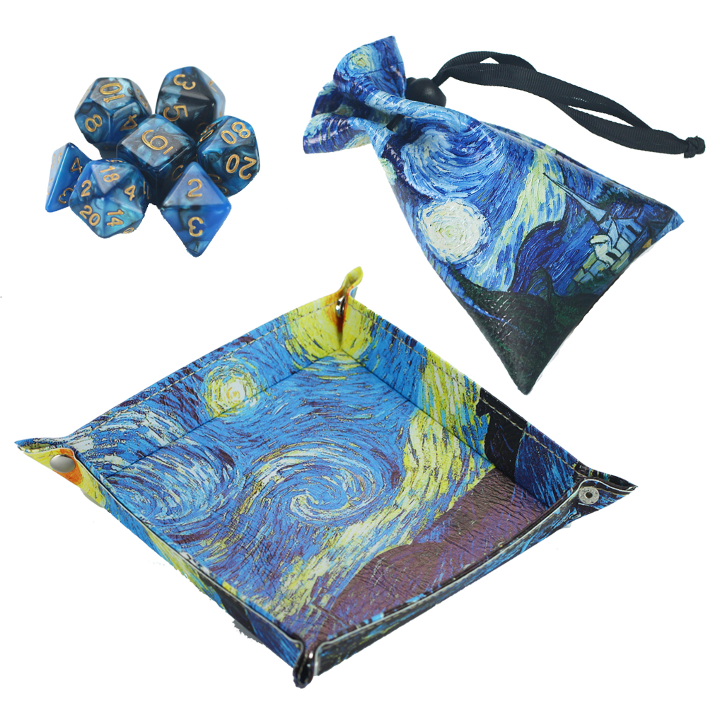 6 stytle: four corner tray + dice-Van Gogh starry sky,