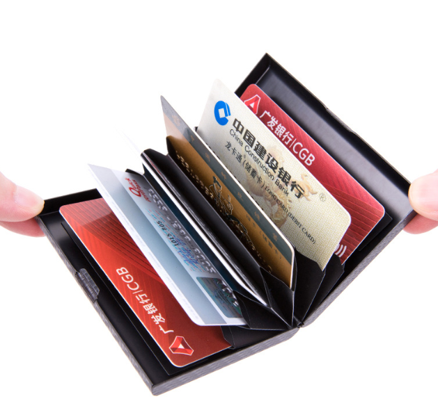 RFID Leather Aluminum Credit Card Holder Wallet with Metal Mon