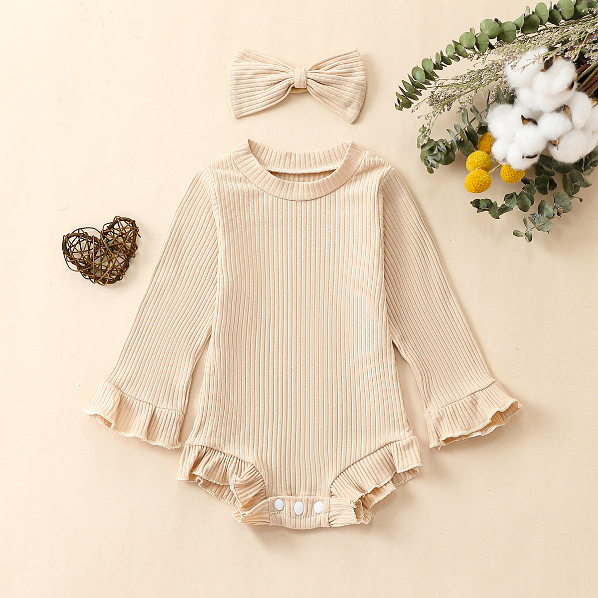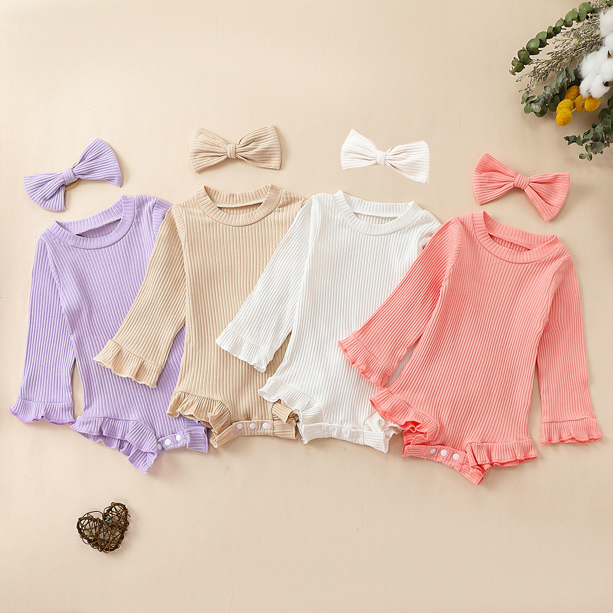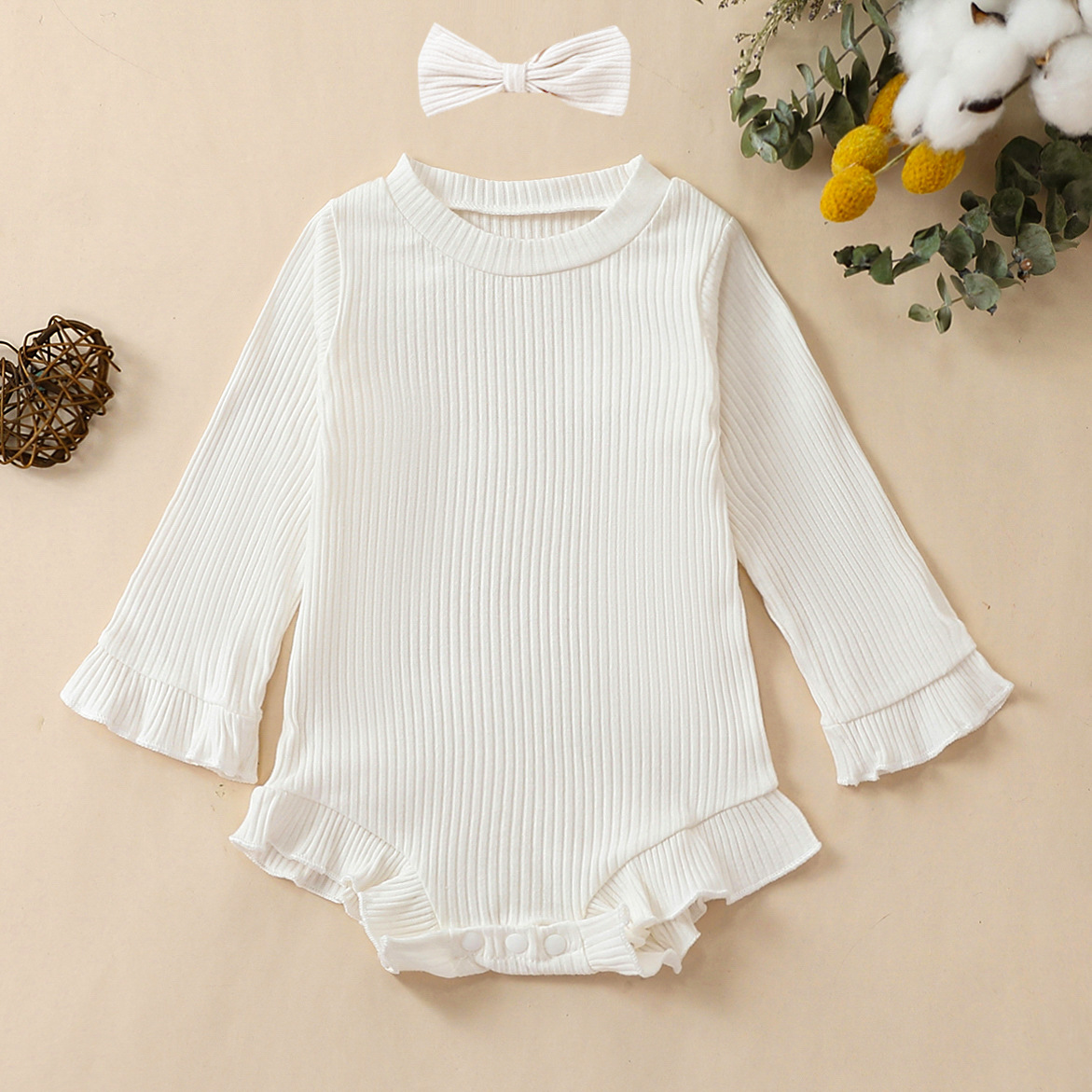 Multi-Color Long-sleeve Jumpsuit Headscarf Baby Little Girl Two-piece Set