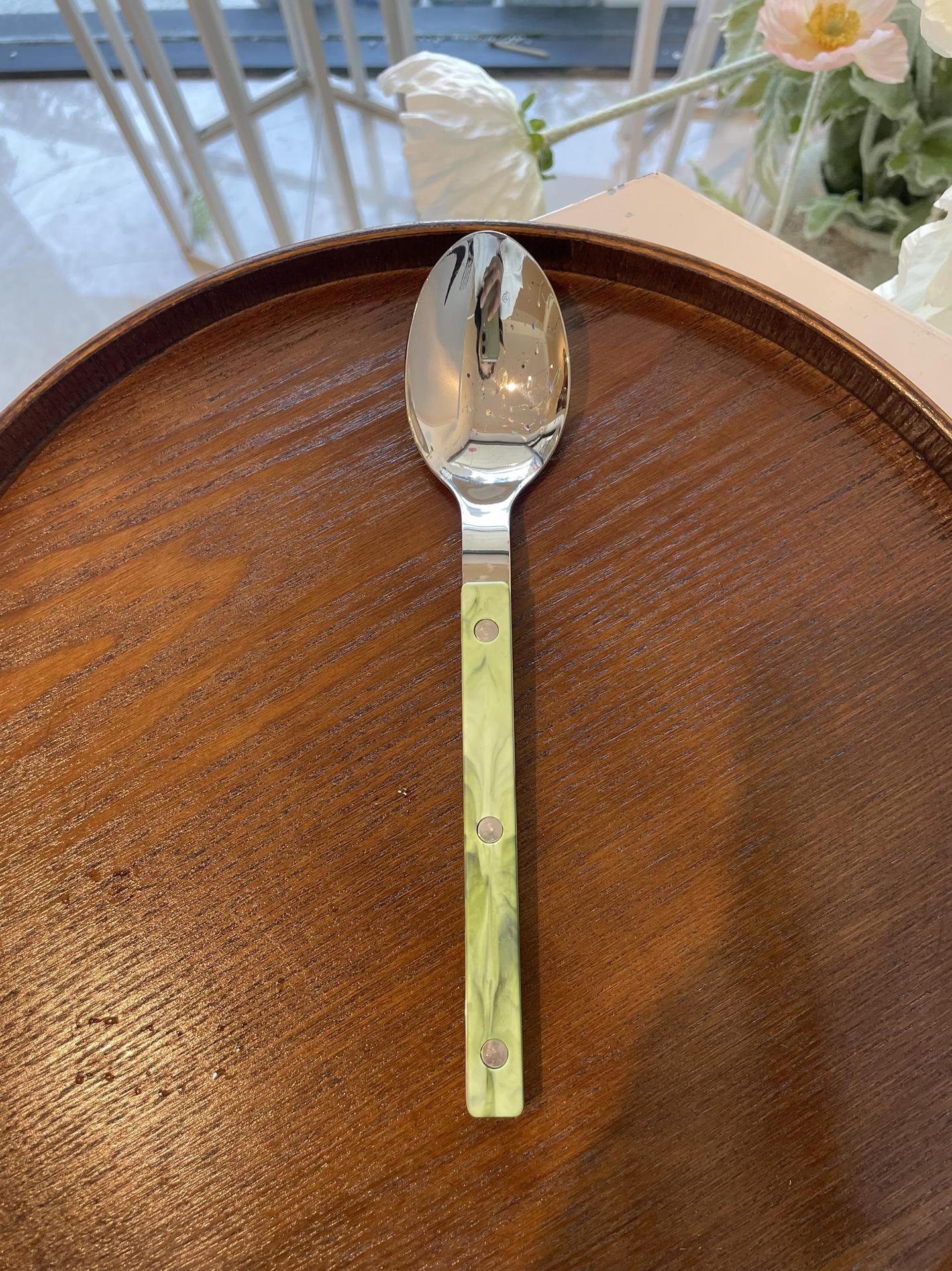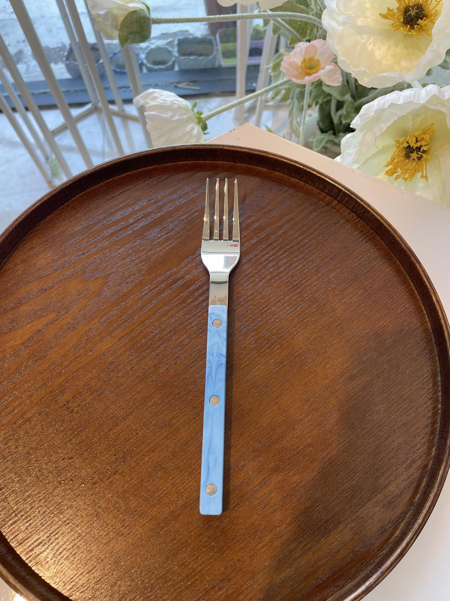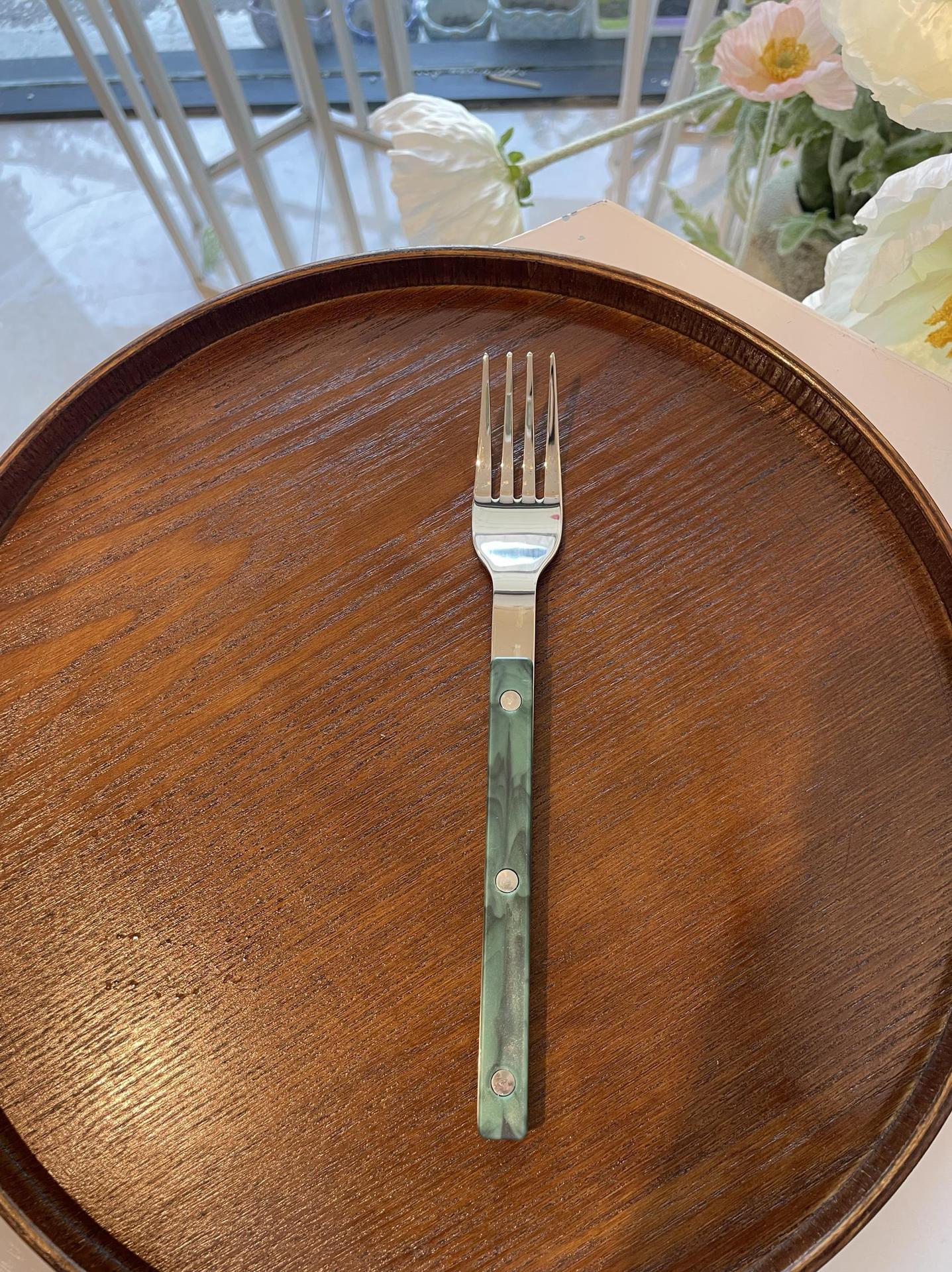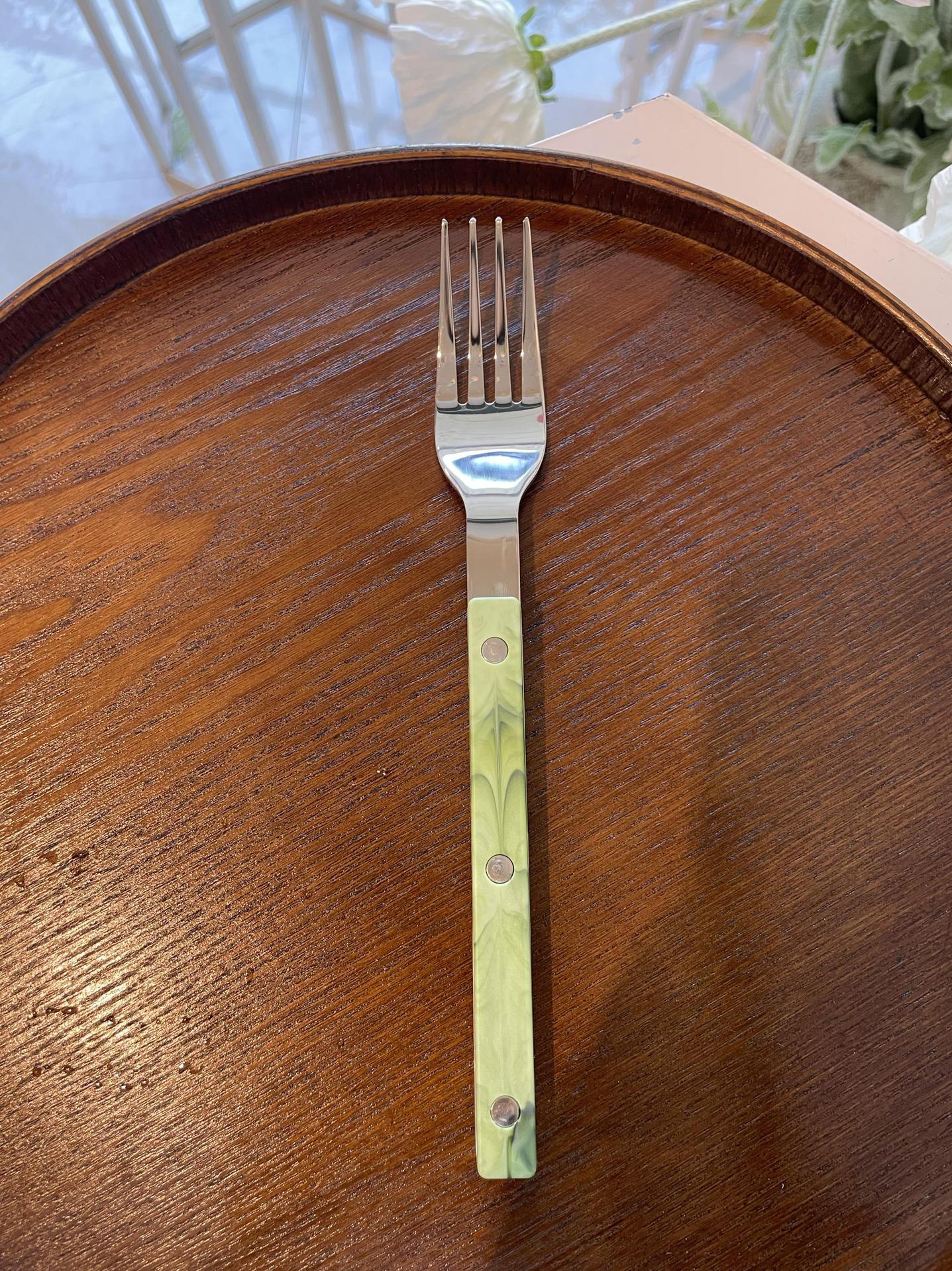 Colors: Light green main dining knife, light green main dining fork, light green main dining spoon; purple main dining knife, purple main dining fork, purple main dining spoon; blue Western-style main dining knife, blue main dining fork, blue main dining spoon; vintage green main dining knife, vintage green main dining fork, vintage green main dining spoon; light green three-piece set, purple three-piece set, blue three-piece set, vintage green three-piece set.