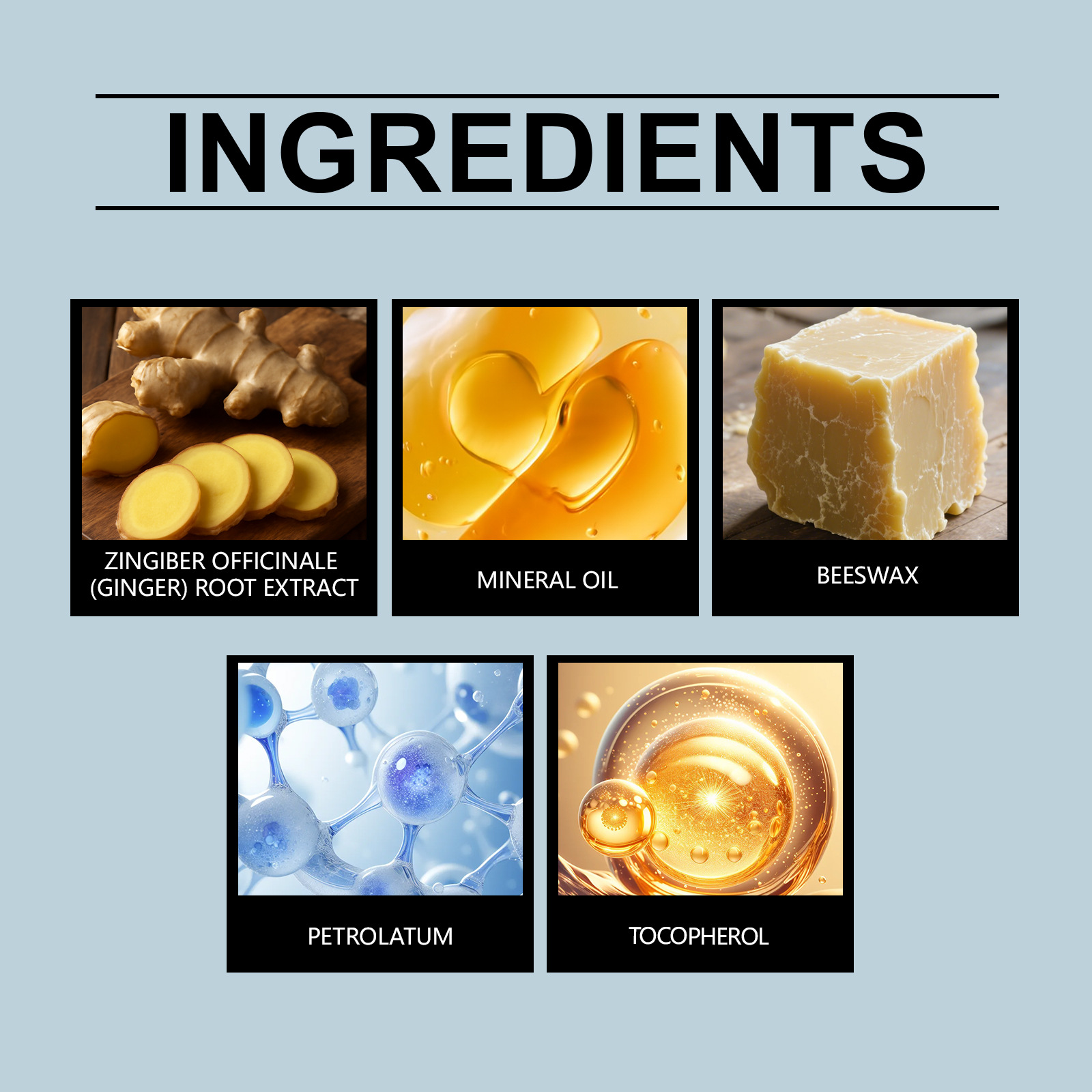 Active ingredients:Tocopherol (vitamin E) and ginger root extract