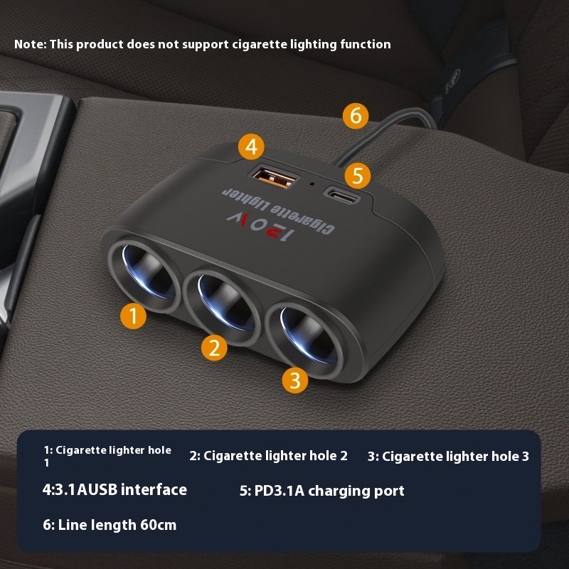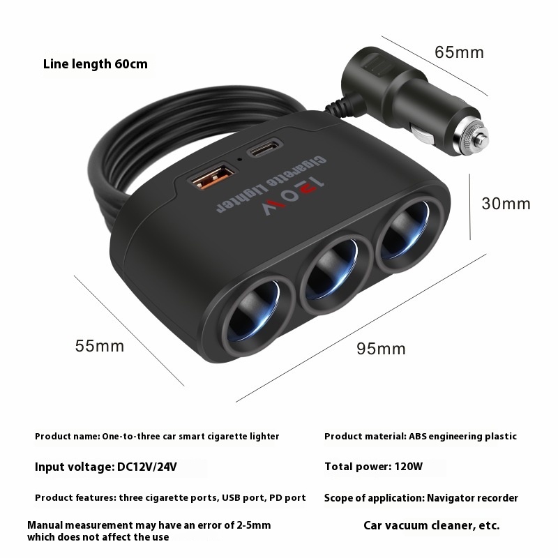Product information:Specification: one-to-three USB Type-C cigarette lighterInput voltage: 12-24V