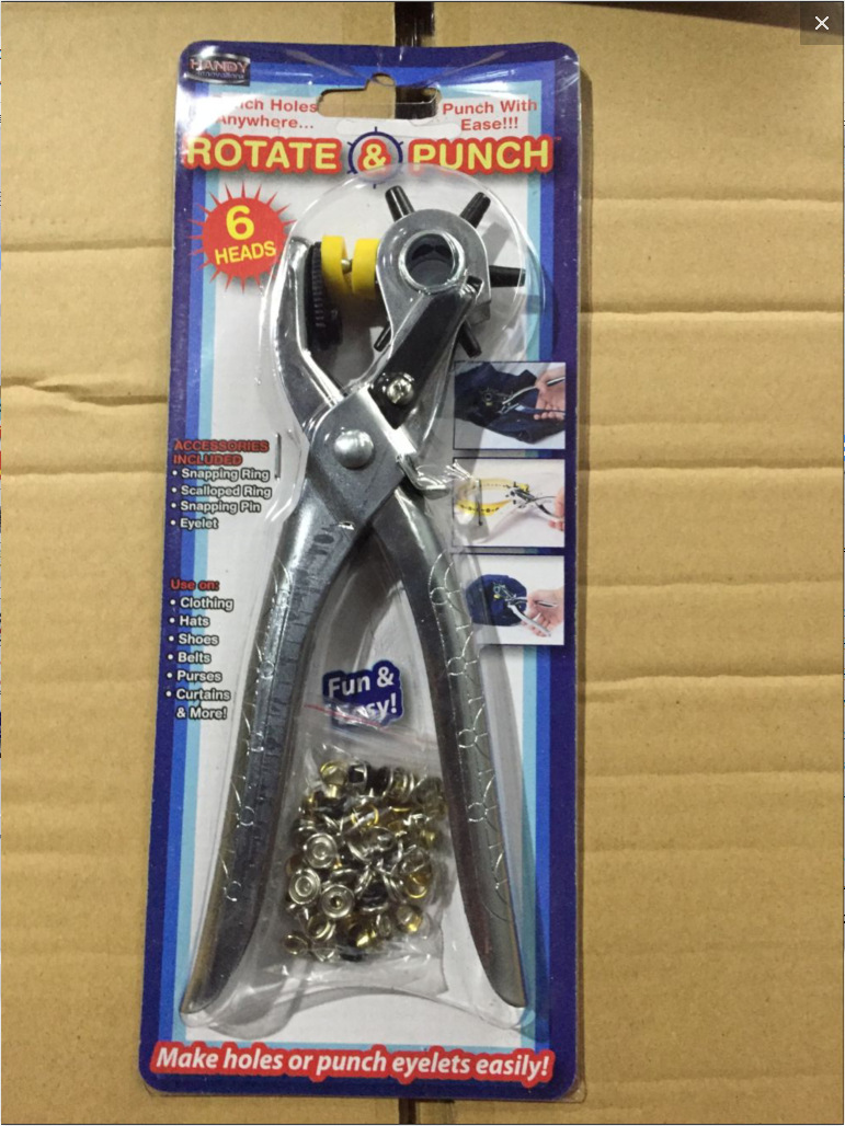 Color finish: chrome plated galvanized white spray Punch diameter: 2mm 2.5mm 3mm 3.5mm 4mm 4.5mm Material: Pliers A3 steel Runner 40 CR Uses: punching, riveting, pressing Product size: 8 inches Accessories: 75 Packing: card + blister