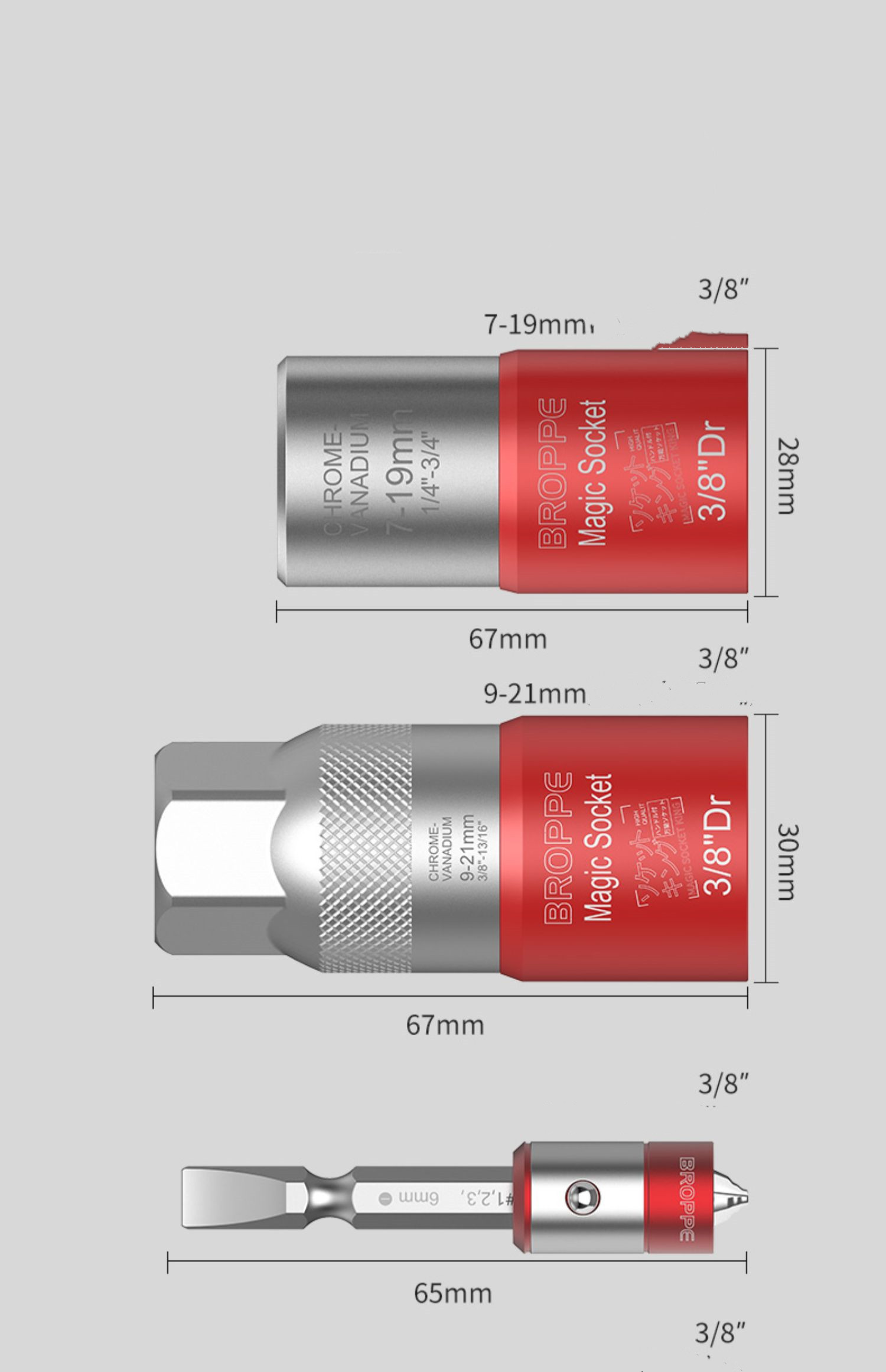 Specifications: 7-19mm universal sleeve (3 piece set), 9-21mm universal sleeve (3 piece set)