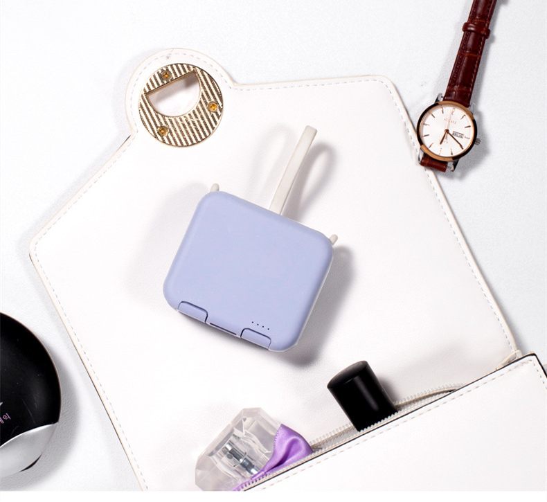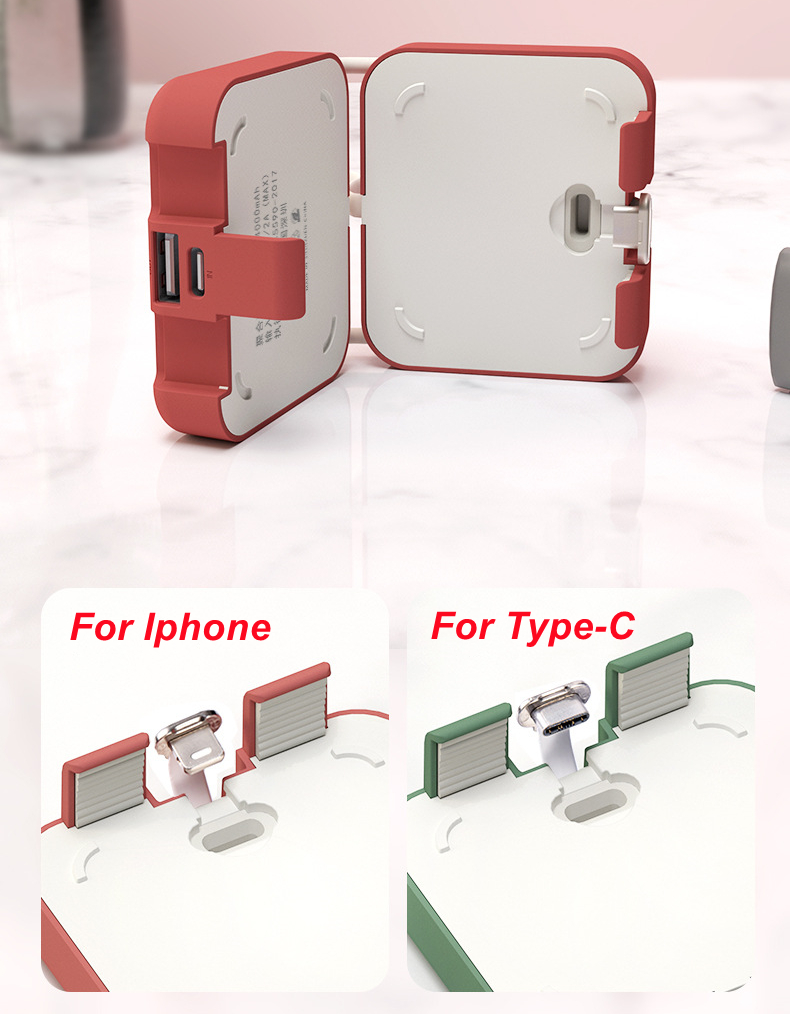 2. Multi-function with Own Cord Handbag Back Clip Power Bank is not just a power bank, it is also a mobile phone holder, freeing your hands. (It can be used when opened, and the appearance is flat when closed)